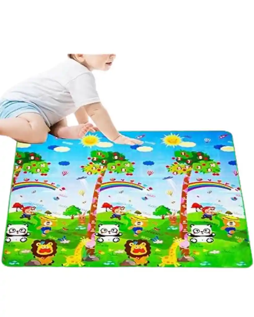 Transforma cualquier espacio en un mundo de aventuras con este tapete de juego colorido y estimulante. Con ilustraciones de animales, niños jugando, globos y paisajes alegres, este tapete no solo decora, sino que también promueve el desarrollo integral desde los primeros meses. 🧠 Beneficios para el Desarrollo: • Estimulación Visual: Colores vivos y escenas animadas que captan la atención y fomentan la percepción visual. • Aprendizaje Temprano: Reconocimiento de animales, objetos y acciones que apoyan el lenguaje y la memoria. • Motricidad y Juego Activo: Superficie segura para gatear, rodar y explorar libremente. • Inteligencia Emocional: Escenarios de juego colaborativo que inspiran empatía, imaginación y conexión social. 🐾 Diseño Encantador: • Animales como leones, pandas y jirafas en escenas de juego • Niños columpiándose, trepando y explorando • Fondo con cielo azul, globos aerostáticos y sol sonriente 🧼 Práctico y Seguro: • Material acolchado y fácil de limpiar