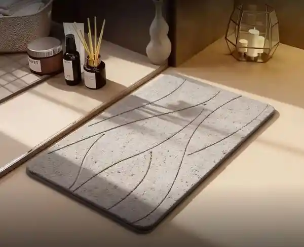Absorción Rápida: La tierra de diatomita, una sustancia pétrea muy porosa y liviana, absorbe el agua de manera eficiente, manteniendo el área seca y limpia. MEDIDAS : 60CM X 40CM