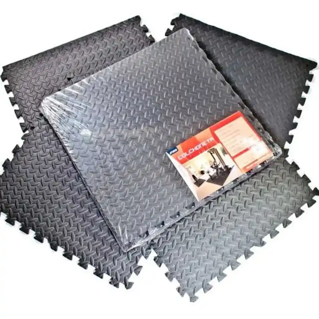 Material: Espuma de Eva alta calidad Color: Negro Fácil de limpiar. Resistente al agua Dimensiones: 120 x 120 x 1 cm ( 4 tapetes C/U 60x 60 x 1 cm de Grosor).