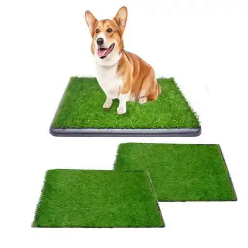 Bienvenidos somos Hally Pets tu mejor aliado para el cuidado de tu hijo Perruno y/o Gatuno. Tapete Mediano Entrenador de Cachorros + 2 Repuestos de grama Área del tapete con la base incluida es de 60 Cm x 44 Cm, Área de la grama es de 53 Cm x 37 Cm Este tapete es ideal para entrenar a su mascota al momento de hacer sus necesidades en el lugar indicado. Este entrenador portátil de textura artificial simula la sensación que produce el pasto auténtico. Este maravilloso tapete genera grandes beneficios no solo para ti sino también para tú mejor amiguito: posee Dos capas de así que limpiarla resultará muy rápido y sencillo. Te ayudará a hacer que la mascota se vuela obediente, ordenada y educada. Cuando el clima no esté apto para sacar al perro, este entrenador será perfecto en ese momento. Y lo mejor de todo es que no se tiene que preocupar por los olores ya que la grama tiene gran capacidad de absorción El repuesto es ideal para usar cuando se lava 1 de las gramas