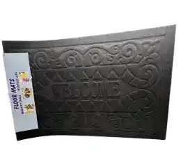 Sofisticación y funcionalidad en un solo tapete. Este tapete en gamuza fina gris oscuro presenta el texto "Welcome" enmarcado en un elaborado diseño de arabescos y triángulos en relieve que le dan un aspecto premium y distinguido. El material de gamuza suave y densa retiene polvo, barro y humedad con cada pisada, protegiendo tus pisos de manera efectiva. Base antideslizante para mayor seguridad. Resistente, elegante y fácil de limpiar. Perfecto para hogares, apartamentos y oficinas. Medidas: 58 x 38 cm.