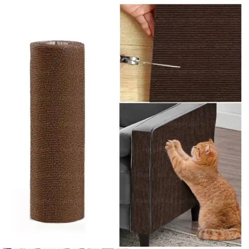 El Tapete Rascador Autoadhesivo es la solución versátil y funcional para satisfacer el instinto natural de rascado de los gatos mientras se protegen las superficies del hogar. Fabricado con fibras de sisal natural de alta resistencia, este rascador cuenta con un respaldo autoadhesivo de gran fijación que permite instalarlo fácilmente en paredes, esquinas de muebles, patas de mesas o superficies lisas. Su diseño delgado y discreto se integra a la perfección con el mobiliario, ofreciendo una zona de marcaje segura y duradera. Es el producto ideal para personas que buscan proteger muebles específicos sin necesidad de instalar rascadores voluminosos. Su formato adhesivo permite que se adapte a sus necesidades exactas ya que lo puedes cortar a la medida que lo requieras Características Destacadas: Sisal Natural de Alta Densidad: Material ecológico y resistente que soporta el rascado intenso, ayudando a mantener las uñas del gato saludables y limadas. Adhesivo de Fuerte Sujeción: Diseñado para adherirse firmemente a diversas superficies (madera, pared, metal) sin despegarse con el uso diario, pero permitiendo un reemplazo limpio. Multifuncional: Puede utilizarse como rascador de pared, protector de esquinas de sofás o incluso como tapete de suelo para gatos que prefieren rascar de forma horizontal.