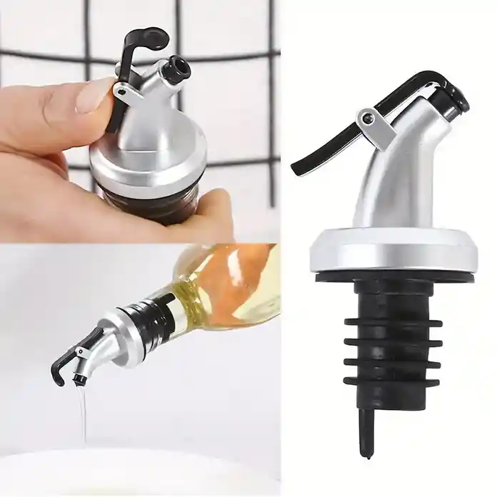 Tapón de botella de aceite con pico, tapón general a prueba de fugas, sellado controlable con apertura y cierre automático, tapón de botella de salsa de soja y vinagre para cocina, boca de vertido de botella de condimento, suministros de cocina, accesorios de cocina. Cantidad: 1 und. Color: Plateado. Paquete contiene: 1 und de tapón de botella para aceites, vinos, licores, vinagres, otros. color plateado.