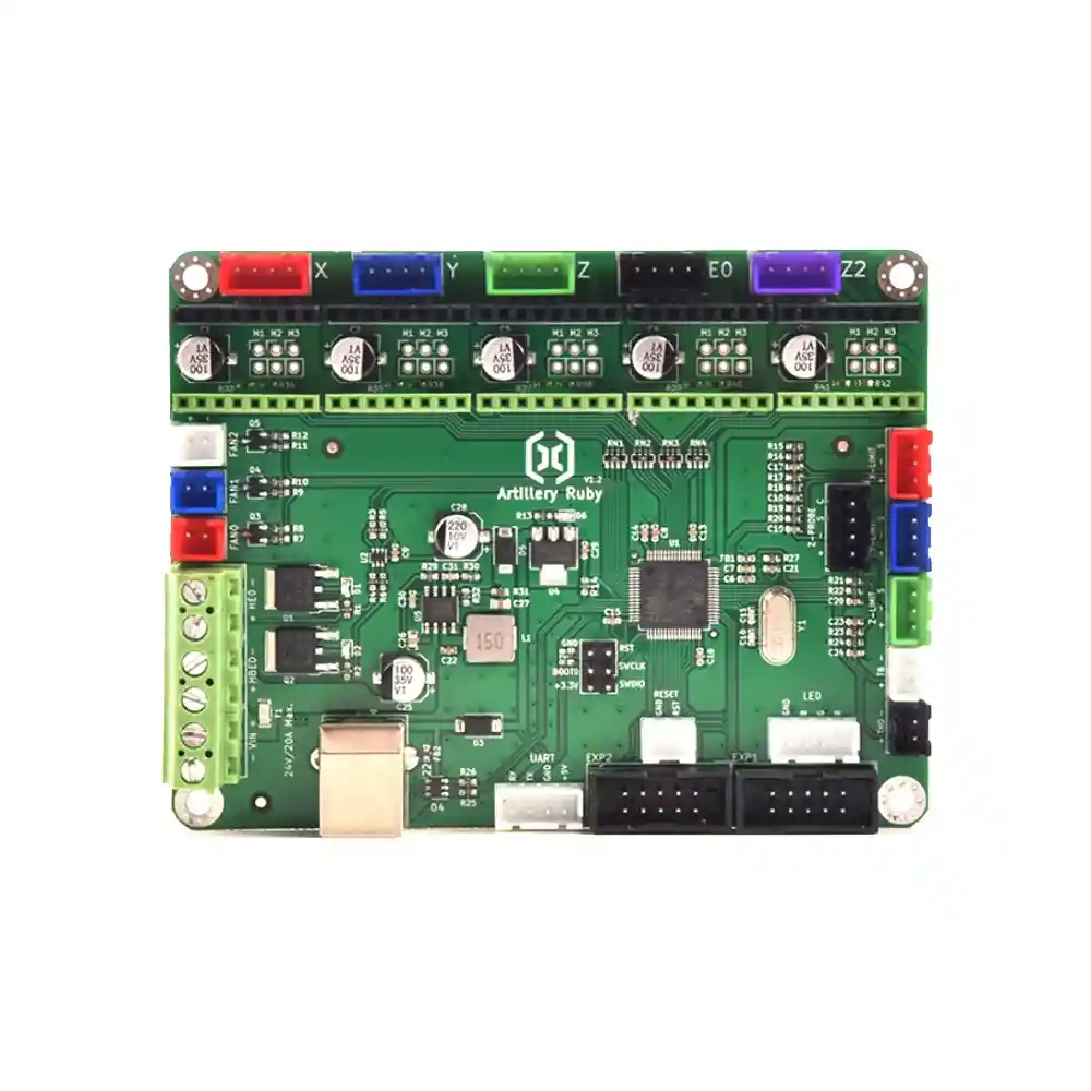 <strong>*** LA TARJETA PUEDE REQUERIR ACTUALIZACION DE FIRMWARE MARLIN, POR LO CUAL EL SOPORTE POR ESO TIENE UN COSTO ADICIONAL, POR FAVOR SOLO OFERTAR SI TIENE CONOCIMIENTO***</strong> Artillery Ruby es una placa base de 32 bits diseñada por Artillery para varias impresoras 3D, incluidas Sidewinder X2, Genius Pro y Hornet. Es compatible con una amplia gama de controladores de motores paso a paso como A4988, DRV8825, TMC2100, TMC2208, TMC2130 y LV8729. La placa Ruby cuenta con una PCB de 4 capas para una mejor disipación del calor y utiliza MOSFET de alta calidad para evitar el sobrecalentamiento, según A3Dprints. Compatibilidad: Impresoras 3D: Artillery Ruby es compatible con Sidewinder X2, Genius Pro y Hornet. Steppers: Admite varios controladores de motores paso a paso, incluidos A4988, DRV8825, TMC2100, TMC2208, TMC2130 y LV8729. Firmware: Es compatible con el firmware Marlin. Pantallas: La placa Ruby es compatible con todas las pantallas LCD compatibles con Marlin y pantallas TFT conectadas a través de AUX. Características: Procesador STM32 de 32 bits: la placa Ruby utiliza un procesador STM32 de 32 bits. PCB de 4 capas: este diseño garantiza una mejor disipación del calor y estabilidad. Componentes de alta calidad: La placa cuenta con MOSFET y conectores de alta calidad. LA COMPRA INCLUYE: <strong>*** LA TARJETA PUEDE REQUERIR ACTUALIZACION DE FIRMWARE MARLIN, POR LO CUAL EL SOPORTE POR ESO TIENE UN COSTO ADICIONAL, POR FAVOR SOLO OFERTAR SI TIENE CONOCIMIENTO***</strong> 1X TARJETA CONTROL ARTILLERY RUBY