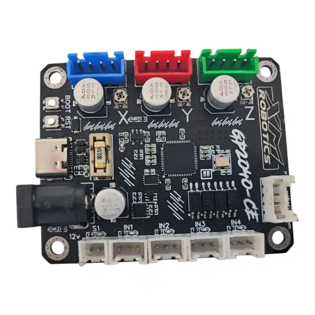 TARJETA CONTROL CNC GRBL RASBERRY PI PICO RP2040-CE. Basada en el chip de control raspberry pi pico rp2040. RP2040 es un circuito integrado de microcontrolador ARM Cortex-M0+ dual de 32 bits de Raspberry Pi Ltd. En enero de 2021, se lanzó como parte de la placa Raspberry Pi Pico. Cantidad de Ejes: 3 XYZ. Entradas de finales de carrera: 3. Entrada de Probe o sonda de altura. Entradas de Stop, feedhold y start. Firmware: basada en el firmware para 32 bit, grbl Hal. Software: soporta UGS, y CNCJs. Voltaje de Entrada: 12-24V. Drivers DRV8825 de 2.5A ajustados a 1/32 de Micropasos. Control de Motor DC, Spindle de 500W. LA COMPRA INCLUYE: 1 x TARJETA CONTROL CNC GRBL RASBERRY PI PICO RP2040-CE