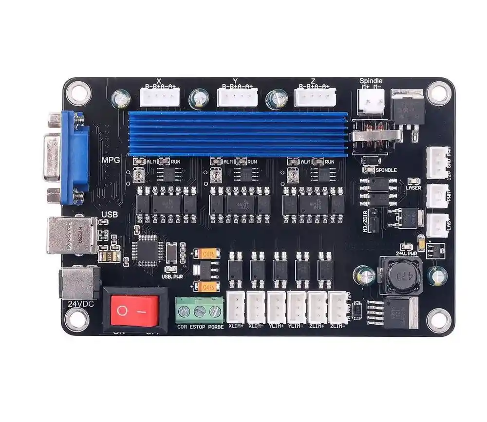 Tarjeta Controladora Mach3 para CNC 3018-PROVer, 3018-MX3 y 3018-PROVer V2 Esta tarjeta es el reemplazo ideal para tu máquina CNC Genmitsu de la serie 3018 que quieras migrar al sistema de control Mach3. Compatible con los modelos 3018-MX3, 3018-PROVer y 3018-PROVer V2, te permitirá mejorar el control y ampliar la compatibilidad de software. Características principales Compatible con Mach3 y DrufelCNC (sólo en Windows). Comunicación por USB de alta estabilidad. Soporta control de 3 ejes (X, Y, Z) para grabado CNC. Compatible con MPG Handwheel (control manual electrónico). Control suave del motor gracias a drivers con hasta 32 micropasos. Frecuencia máxima de pulso: 100 KHz. Soporta corte láser y función de autoajuste de herramienta (Z Probe). Señales aisladas por optoacopladores para mayor protección y menos interferencias. Entrada para botón de emergencia y finales de carrera. Incluye salidas PWM para control de láser o spindle. Compatibilidad Windows XP / 7 / 8 / 10 (32 y 64 bits) No compatible con Linux, macOS ni software basado en GRBL. Ventajas Fácil instalación con conexión USB. Compatible con software CNC profesional (Mach3). Ideal como reemplazo o actualización de tu controladora original. Permite trabajar con grabado, corte láser y funciones avanzadas de CNC. LA COMPRA INCLUYE: 1X TARJETA CONTROL CNC MACH3 3018 MX3 MC3D3-V2.1