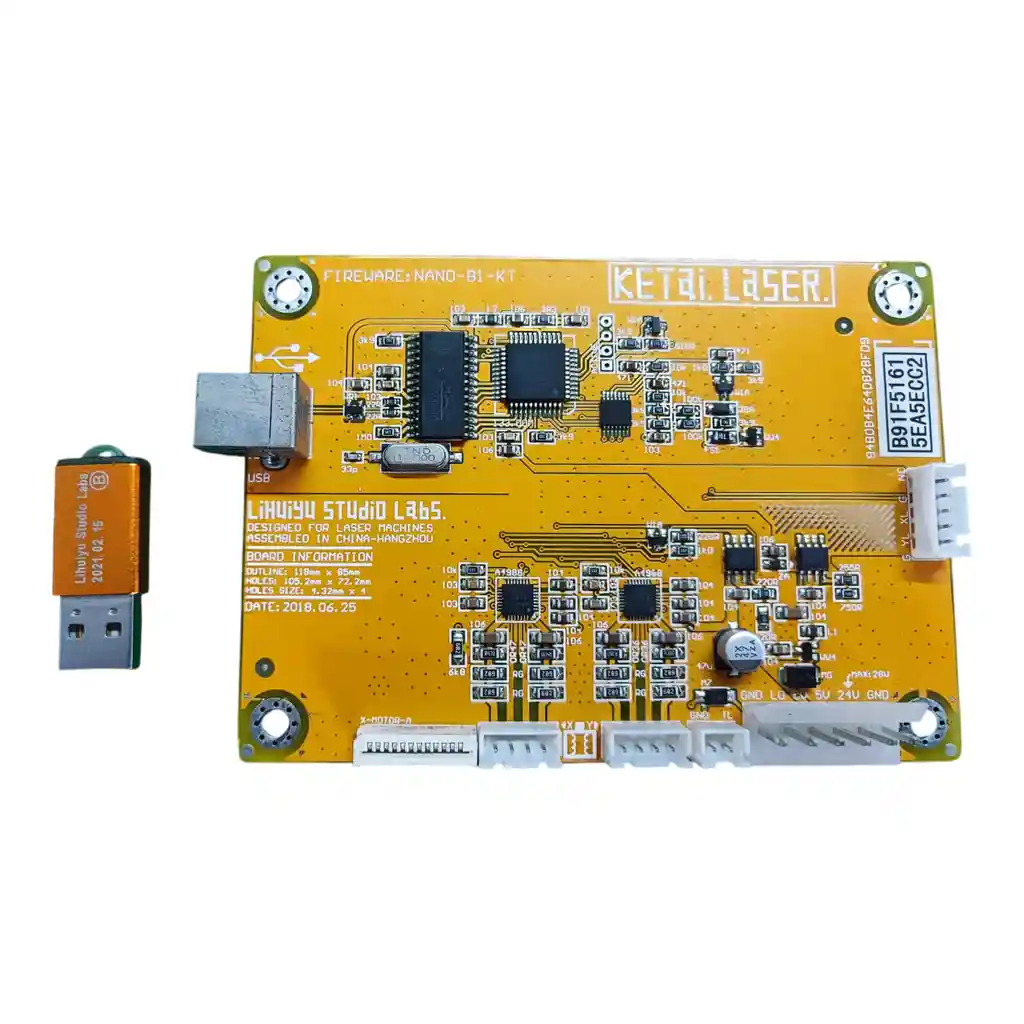 ***CONDICION USADO, RETIRADO DE MAQUINA FUNCIONANDO POR ACTUALIZACION, ESTADO 10/10*** Tarjeta electrónica original utilizada en máquinas de grabado y corte láser tipo CO2 y láseres chinos compactos Ideal como repuesto o reemplazo para equipos que usan controladoras tipo Nano / GRBL Diseñada para controlar los ejes X e Y gestionar finales de carrera y regular la potencia del láser mediante señal PWM Se conecta fácilmente al computador por USB y es compatible con software de control láser común en este tipo de máquinas Características principales Marca KEJI LASER Modelo Fireware Nano BL-KT Tipo Tarjeta controladora para máquina láser Conexión USB tipo B Control de motores paso a paso ejes X y Y Soporte para finales de carrera Control de potencia del láser PWM Alimentación 12V / 24V Diseño compacto y fácil instalación Fabricación aproximada 2018 Compatibilidad Grabadoras y cortadoras láser CO2 pequeñas Máquinas láser tipo K40 y modelos similares Software compatible según configuración LaserGRBL Benbox similares Uso recomendado Repuesto para tarjeta dañada Reparación de máquinas láser Actualización o mantenimiento de equipos existentes LA COMPRA INCLUYE: ***CONDICION USADO, RETIRADO DE MAQUINA FUNCIONANDO POR ACTUALIZACION, ESTADO 10/10*** 1X TARJETA CONTROL LASER CO2 LIHUIYU NANO