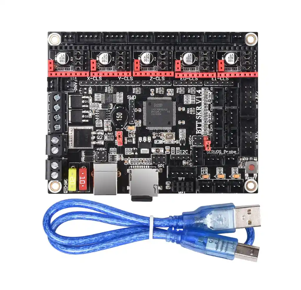 La placa base BIGTREETECH SKR V1.4 es una placa base de impresora 3D de 32 bits optimizada y mejorada por el equipo de impresion 3D. para las deficiencias de la version V1.3, especialmente para impresoras pequeñas y medianas. Caracteristicas de BTT SKR V1.4. 1. BTT SKR V1.4 con frecuencia principal de 32 bits 100 MHz nivel ARM Cortex-M3 serie LPC1768 chip de control principal, el rendimiento se ha mejorado enormemente . 3. Equipado con firmware Marlin2.0 altamente modular y de codigo abierto, que es conveniente para los usuarios para el desarrollo secundario y de bricolaje . 4. Con el chip de potencia dedicado M6130, admite una entrada de alimentacion de 12-24V . 5. Soporte 2.4, 2.8, pantalla tactil a color de 3.5 pulgadas, soporte de pantalla LCD2004, pantalla LCD12864 . 6. Actualice y configure el firmware a traves de la tarjeta SD, que es simple, conveniente y eficiente . 7. El modo de trabajo SPI y UART impulsado por el controlador TMC, que tambien tiene el pin DIAG, que elimina el complejo proceso de cableado y se puede utilizar simplemente desenchufando la tapa del puente . 8. Resume la compatibilidad con impresoras Si bien apagado, deteccion de rotura del filamento, apagado automatico despues de imprimir y asi sucesivamente . 9. Tubo MOSFET de alto rendimiento, mejor efecto de disipacion de calor . 10. El uso de fusibles extraibles facilita el proceso de sustitucion . 11. Puerto extendido reservado SERVOS y Probe para admitir BL Touch . 12. Soporte de barra de luz RGB . 13. Utilice el diseño de seleccion de energia para separar la fuente de alimentacion USB de la fuente de alimentacion del conmutador, evitando efectivamente la situacion de que el puerto USB de la computadora se queme debido a un cortocircuito . 14. La interfaz de funcion especial utiliza la aguja de fila con un color llamativo, lo que reduce en gran medida la tasa de error del cableado. 15. Las interfaces I2C, SPI y WIFI estan reservadas para la comodidad del bricolaje . 16. La interfaz del variador de circuito cerrado esta reservada para reducir los problemas del modulo de conmutacion enchufable . 17. Interfaz de doble eje z, eliminando el problema del modulo de expansion de la unidad externa . 18. La interfaz del termistor esta protegida por una resistencia presurizada de condensador biliar para mejorar la resistencia de la interfaz . 19. Mas interfaces de ventilador: ventilador CNC de 1 via, ventilador normalmente abierto de 3 vias . 20. Modulo de fuente de alimentacion DC5V externo enchufable para suministrar energia a la pantalla TFT , BLtouch y RGB . Tamaño de la apariencia: 110 * 85 mm Tamaño de montaje: 102 * 76 mm Microprocesador: CPU ARM Cortex-M3 Voltaje de entrada: DC12V-DC24V 5A-15A Voltaje logico : DC 3,3 V Modulo WIFIESP-01S Controlador de motor: compatible con TMC5161 , TMC5160 , TMC2209 , TMC2225 , TMC2208 , TMC2130 , ST820 , LV8729 , DRV8825 , A4988 etc., motor externo independiente Soporte del modo de trabajo del controlador: SPI , UART , STEP / DIR Interfaz de controlador de motor : X. Y. Z. E0. E1. 5 vias ( cada una tiene una unidad de circuito cerrado interfaz) hasta 256 subdivisiones Interfaz del sensor de temperatura: TH0, .TH1, TB, 3 canales 100K NTC Temperature interfaz del sensor: TH0, TH1, TB, 3 canales 100K NTC (resistencia termica) Pantalla : 2.4. 2.8. TFT de 3,5 pulgadas ( Soporte de pantalla de modo dual ) , LCD2004 , LCD12864 Interfaz de comunicacion para PC : USB cuadrado, facil de conectar, baudios de comunicacion tasa de 115200 Amplie el soporte de la funcion de interfaz : Reanudar la impresion mientras esta apagado, Deteccion de rotura de filamentos, apagado automatico despues de la impresion, nivelacion automatica, BL Touch Formato de archivo de soporte: codigo G Arquitectura de maquina compatible: XYZ. delta. kossel. Ultimaker. corexy Software recomendado: , Simplify3D. pronterface. Repetidor-anfitrion. Makerware LA COMPRA INCLUYE: 1X TARJETA CONTROL SKR MINI V1.4 lpc1768 1X CABLE USB *** MICRO SD NO INCLUIDA***