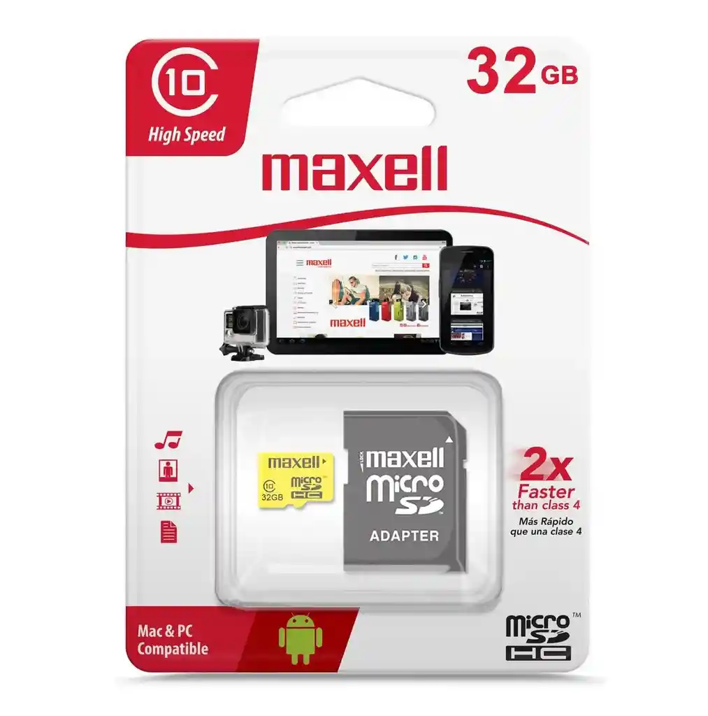 Tarjeta De Memoria Micro Sd 32gb Maxell clase 10 original microsd Lleva tu música, archivos y documentos a donde quieras Memoria micro-SD Maxell Características: • Capacidad: 32 GB • Incluye adaptador • Ideal para dispositivos portátiles