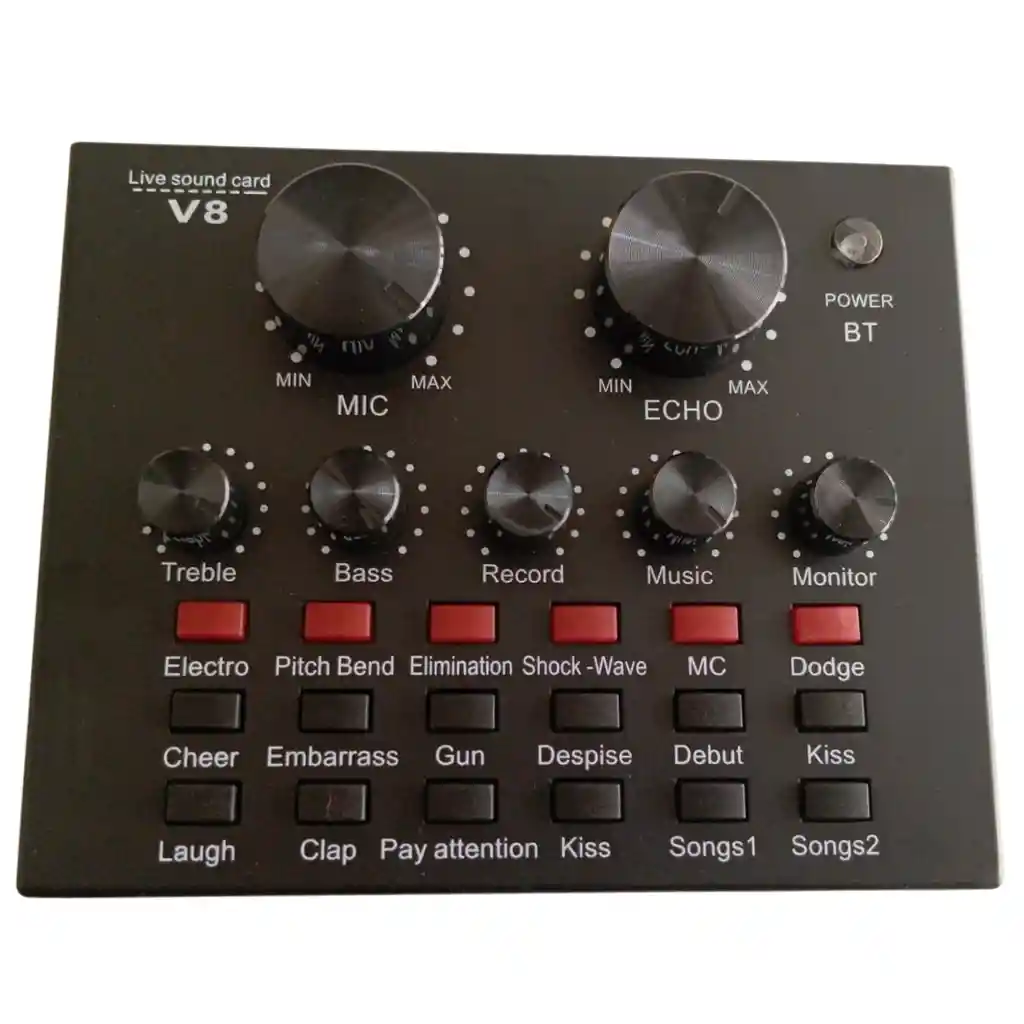 ¡Eleva tu experiencia de audio a un nuevo nivel con la Tarjeta de Sonido V8 Profesional! Ideal para streamers, podcasters, músicos, cantantes de karaoke y creadores de contenido que buscan una calidad de sonido excepcional y efectos en tiempo real.