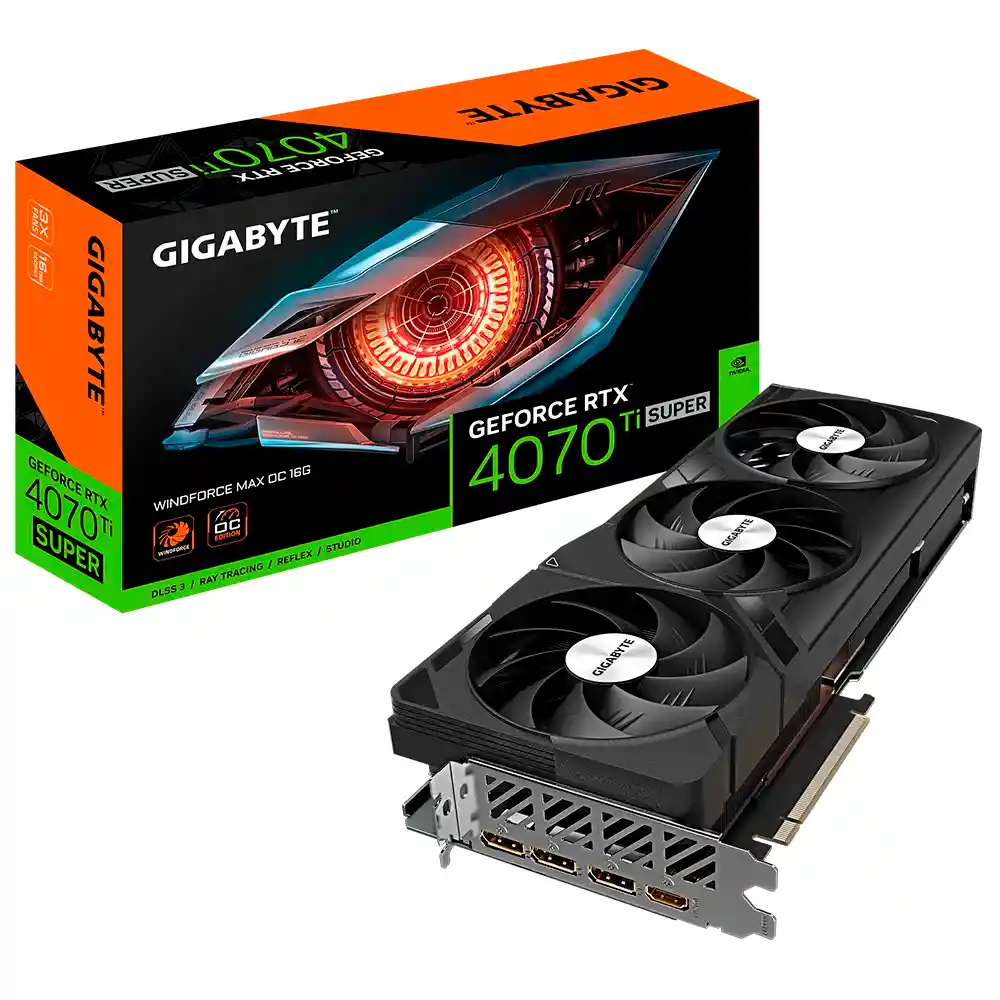 La GeForce RTX 4070 Ti SUPER WINDFORCE MAX OC 16G ofrece un rendimiento gráfico incomparable con la arquitectura Ada Lovelace de NVIDIA, soportando DLSS 3 y trazado de rayos en tiempo real. Con Tensor Cores de 4ª generación, mejora el rendimiento hasta 4 veces con DLSS 3, y el Ray Tracing de 3ª generación es 2 veces más eficiente. Su memoria GDDR6X de 16GB y interfaz de 256 bits la hace ideal para juegos en alta resolución y tareas avanzadas. Incluye refrigeración WINDFORCE, Dual BIOS para modos de alto rendimiento o silencioso, y un diseño robusto con placa trasera metálica y soporte anti-sag. Ideal para gaming y productividad creativa. Especificaciones: Motor Gráfico: NVIDIA GeForce RTX 4070 Ti SUPER Bus Standard: PCI Express 4.0 OpenGL: OpenGL 4.6 Memoria de Video: 16GB GDDR6X Frecuencia del Reloj: Boost: 2655 MHz Base: 2610 MHz CUDA Core: 8448 Velocidad de Memoria: 21 Gbps Memoria de Interface: 256 bit Resolución: Digital Max Resolution 7680 x 4320 Interface: 1x HDMI 2.1a 3x DisplayPort 1.4a Soporte Máximo de Pantalla: 4 DirectX: 12 Ultimate Dimensiones: 331 x 136 x 55.5 mm PSU Recomendada: 750W Conectores de Energía: 1 x 16-pin Garantía: 12 Meses