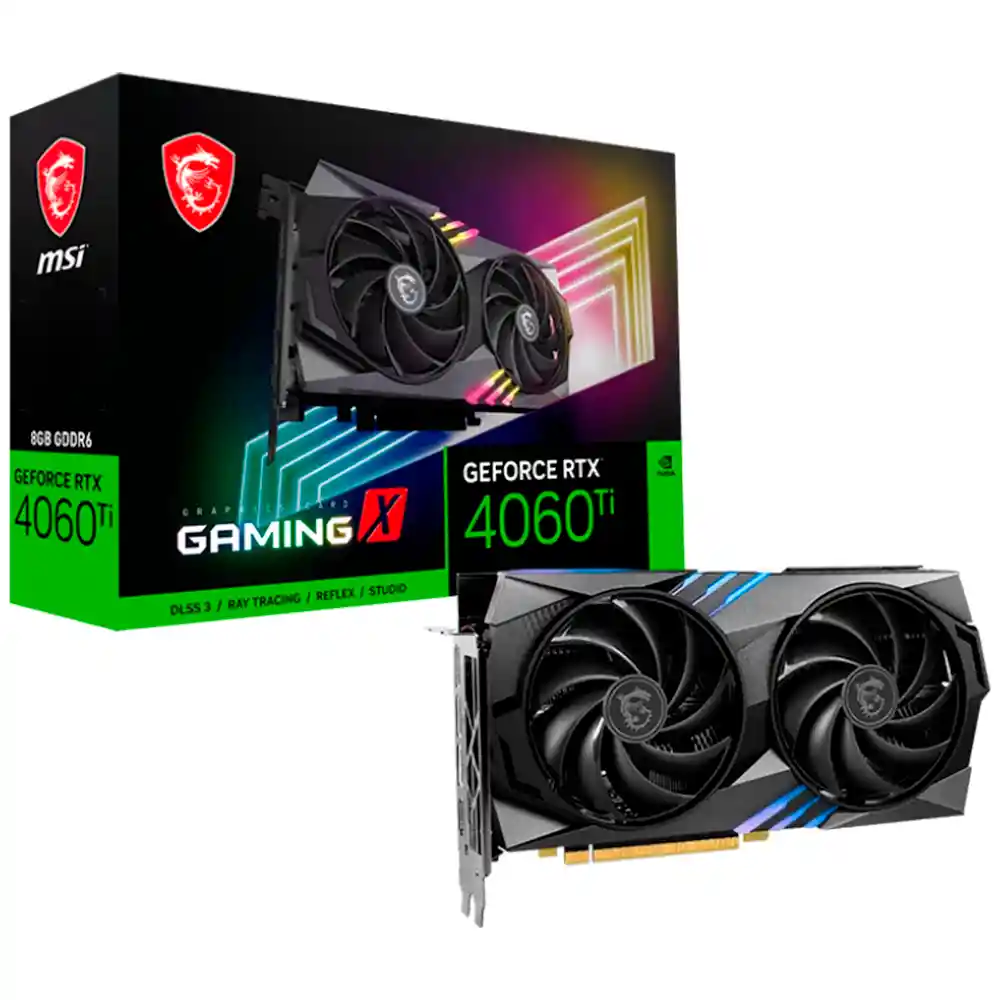 La NVIDIA GeForce RTX 4060 Ti GAMING X 8G, con arquitectura NVIDIA Ada Lovelace, ofrece un rendimiento superior para gaming y creación. Con 8GB de memoria GDDR6 y velocidad de transferencia de 18 Gbps, garantiza gráficos ultrarrápidos con trazado de rayos y DLSS 3. Sus puertos DisplayPort y HDMI 2.1a soportan resoluciones de hasta 8K a 60Hz HDR. El diseño térmico TWIN FROZR 9, con ventiladores TORX Fan 5.0 y Baseplate de cobre, asegura un enfriamiento óptimo. Además, el software Afterburner y MSI Center permiten personalizar y optimizar el rendimiento. Ideal para quienes buscan potencia y eficiencia. Especificaciones: Nombre del modelo: GeForce RTX 4060 Ti GAMING X 8G Motor gráfico: NVIDIA GeForce RTX 4060 Ti Núcleos CUDA: 4352 unidades Memoria: 8GB GDDR6 Velocidad de Memoria: 18 Gbps Ancho de bus de memoria: 128 bits Frecuencias Rendimiento extremo: 2655 MHz (MSI Center) Boost Clock: 2640 MHz Estándar de bus: PCI Express Gen 4 x16 (usa x8) Salidas: DisplayPort x 3 (v1.4a) HDMI x 1 (compatible con 4K@120Hz HDR, 8K@60Hz HDR y Variable Refresh Rate (VRR) según HDMI 2.1a) Resolución máxima digital: 7680 x 4320 Compatibilidad con DirectX: 12 Ultimate Versión soportada de OpenGL: 4.6 Tecnología G-SYNC: Sí Soporte HDCP: Sí Máximas pantallas soportadas: 4 Consumo de energía: 160 W Conectores de energía: 8-pin x 1 Fuente recomendada: 550 W Dimensiones de la tarjeta: 247 x 130 x 42 mm Peso (tarjeta / con empaque): 661 g / 1113 g Garantía: 12 Meses