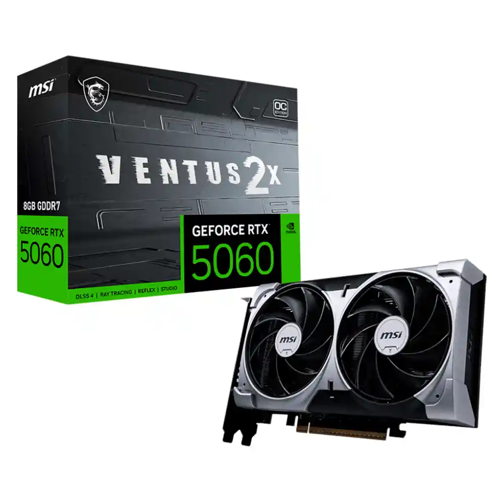 Potencia de nueva generación en formato compacto La MSI GeForce RTX 5060 VENTUS 2X 8G OC ofrece rendimiento de última generación con arquitectura NVIDIA, 3840 núcleos CUDA y 8 GB de memoria GDDR7 a 28 Gbps. Ideal para jugar en 1080p y 1440p con trazado de rayos y efectos avanzados. Su boost alcanza 2535 MHz, y el sistema VENTUS 2X garantiza refrigeración eficiente en un diseño compacto de 197 mm. Incluye PCIe Gen 5, consumo de solo 145 W y soporte de realidad virtual. Con tres DisplayPort 2.1b y un HDMI 2.1b, admite hasta 8K a 120 Hz o 4K a 480 Hz, junto a DLSS 4, Reflex 2, Broadcast, ACE y soporte para 4 pantallas. Especificaciones: Nombre del modelo: GeForce RTX 5060 VENTUS 2X 8G OC Motor gráfico: NVIDIA GeForce RTX 5060 Núcleos CUDA: 3840 Units Memoria: 8GB GDDR7 Bus de memoria: 128 bits Velocidad de la memoria: 28 Gbps Velocidad de memoria: 17 Gbps Reloj de núcleo (Boost) Rendimiento extremo: 2535 MHz (MSI Center) Boost: 2527 MHz Interfaz: PCI Express Gen 5 x16 (usa x8) Conectores de alimentación: 8 pines x1 Dimensiones: 197 x 120 x 41 mm Peso: 511 g / 829 g Consumo de energía: 145 W Fuente de alimentación recomendada: 550 W Salidas de video: DisplayPort x 3 (v2.1b) HDMI x 1 (como se especifica en HDMI 2.1b: hasta 4K 480 Hz o 8K 120 Hz con DSC, Gaming VRR, HDR) Resolución máxima digital: 7680 x 4320 Compatibilidad con DirectX: 12 Ultimate Versión soportada de OpenGL: 4.6 Número máximo de pantallas: 4 Tecnologías G-SYNC NVIDIA DLSS 4 NVIDIA Encoder NVIDIA Estudio NVIDIA Broadcast NVIDIA Reflex 2 Vulkan 1.4 HDCP NVIDIA ACE Garantía: 12 Meses