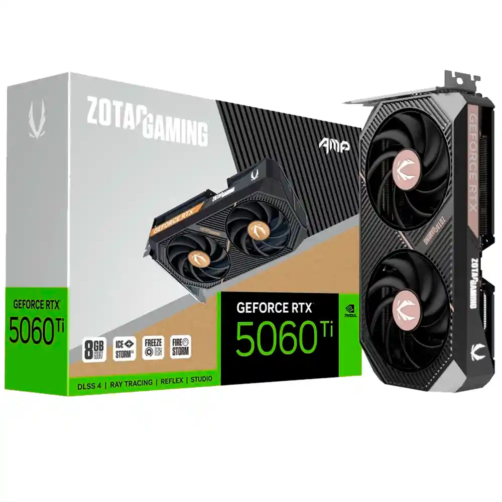 La ZOTAC GAMING GeForce RTX 5060 Ti 8GB AMP ofrece rendimiento de última generación en formato compacto. Con arquitectura NVIDIA Blackwell, DLSS 4 y 8GB GDDR7, brinda gráficos fluidos y potentes incluso en sistemas SFF. Su diseño de doble ventilador con refrigeración IceStorm 2.0 incluye ventiladores BladeLink, FREEZE Fan Stop y un backplate metálico que mejora la estructura y disipación. Incluye overclock de fábrica y usa un conector PCIe de 8 pines compatible con fuentes estándar. La iluminación LED blanca añade un estilo moderno. Ideal para gamers que buscan potencia y eficiencia en un tamaño reducido. Especificaciones: Motor Gráfico: NVIDIA GeForce RTX 5060 Ti Memoria: 8 GB GDDR7 Interfaz de memoria: 128 bits Velocidad de memoria: 28 Gbps Velocidad del Núcleo: Frecuencia Boost: 2632 MHz Bus: PCI Express Gen 5 x8 Salidas de Video: 3 x DisplayPort 2.1b (hasta 4K a 480 Hz o 8K a 165 Hz con DSC) 1 x HDMI 2.1b (hasta 4K a 120 Hz HDR, 8K a 60 Hz HDR, compatible con VRR) Tecnologías de Video: Compatible con HDCP 2.3 Compatible con NVIDIA G-SYNC Pantallas Soportadas: Máximo de pantallas: 4 Resolución digital máxima: 7680 x 4320 (8K) Consumo y Energía: Consumo máximo: 180 W Fuente de alimentación recomendada: 600 W Conector de alimentación: 1 x 8 pines Compatibilidad de Software: Soporte DirectX: Versión 12 Ultimate Soporte OpenGL: Versión 4.6 Sistema operativo compatible: Windows 11 / Windows 10 64-bit (versión 1809 o posterior) Refrigeración: IceStorm 2.0 Tamaño: 2 slots SLI: No compatible Dimensiones: Tarjeta: 220.5 x 120.25 x 41.6 mm Garantía: 12 Meses