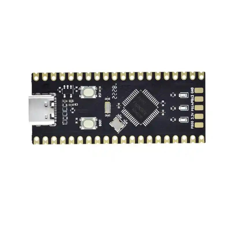 Air32F103 es un clon de STM32F103 con frecuencia de hasta 216 MHz Air32F103 es otro clon del microcontrolador STM32F103 que puede ser más rápido si es necesario con un reloj de hasta 216 MHz en lugar de los 72 MHz del microcontrolador STMicro STM32 Arm Cortex-M3 original. El primer SKU de la familia es el Air32F103CBT6 cuyos periféricos y diseño de hardware son compatibles con piezas equivalentes STM32F103CBT6 y se ofrecen con 32 KB de RAM y 128 KB de flash. También hay una placa de desarrollo similar a Bluepill, pero con un pinout diferente, hecha por LuatOS. La documentación para la placa y el microcontrolador se puede encontrar en un Wiki que incluye la hoja de datos de MCU que indica modelos con flash de 256 KB y SRAM de 64 KB (Air32F103CCT6) y SRAM de 96 KB (Air32F103RPT6). Dado que el wiki solo está en chino, es posible que desee consultar una publicación en inglés en Chowdera para aprender cómo comenzar con Keil IDE utilizando el código alojado en Gitee. El chip y la placa también fueron vistos en los formularios de EEVBlog y algunos usuarios se apoderaron de ellos. Un punto importante es que la empresa, llamada Shanghai Hezhou Communication Technology Co., Ltd. , también proporciona Air103 y Air105, pero no son compatibles porque se basan en la arquitectura C-Sky. Los usuarios que probaron la placa encontraron que funcionaba bien. Por ejemplo, Fanoush mostró Espruino para STM32 a la placa Air32 y notó que USB y GPIO funcionaron de inmediato, con una latencia de flash mucho más baja que en el STM32 original o el clon APM32, y también nos dijeron que OpenOCD funciona en la placa. . Pero no esperes una compatibilidad del 100 %, ya que hay algunas diferencias enumeradas en la wiki. Núcleo: Núcleo de 32 bits Hasta 216MHz de frecuencia de trabajo, hasta 2,54 DMips/MHz (CoreMark1.0) Multiplicación de ciclo único y división de hardware memoria 128K/256K bytes de memoria de programa flash 32K/64K/96K bytes de SRAM Reloj, reinicio y administración de energía Fuente de alimentación de 2,0~3,6 V y pin de E/S Restablecimiento de encendido/apagado (POR/PDR), voltaje programable monitor (PVD) 4-32MHz oscilador de cristal Oscilador RC de 8 MHz sintonizado de fábrica incorporado Oscilador RC de 40kHz incorporado con calibración Oscilador RTC de 32kHz con función de calibración bajo consumo de energía Modos de suspensión, apagado y espera VBAT alimenta RTC y registros de respaldo 3 ADC de 12 bits con tiempo de conversión de 1 us (hasta 16 canal de entrada) Rango de conversión: 0 a 3,6V Tres conjuntos de funciones de muestreo y retención sensor de temperatura 2 convertidores D/A de 12 bits DMA: controlador DMA de 12 canales Periféricos compatibles: temporizadores, ADC, DAC, SDIO, SPI, I2S, I2C y USART CON LA COMPRA LLEVAS: 1x TARJETA DESARROLLO AIR32F103