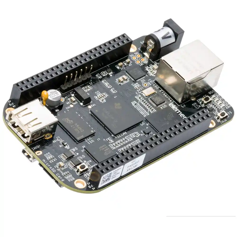 BeagleBone Black es una plataforma de desarrollo de bajo costo y apoyada por la comunidad para desarrolladores y aficionados. Inicie Linux en menos de 10 segundos y comience a desarrollar en menos de 5 minutos con un solo cable USB. Procesador: AM335x 1GHz ARM Cortex-A8 512 MB de RAM DDR3 Almacenamiento flash integrado eMMC de 4 GB Acelerador de graficos 3D NEON acelerador de punto flotante 2x microcontroladores PRU de 32 bits Conectividad Cliente USB para alimentacion y comunicaciones. Puerto USB Ethernet HDMI 2 cabezales de 46 pines Otros derivados de BeagleBone Compatibilidad de software Debian Androide Ubuntu Cloud9 IDE en Node.js con biblioteca LA COMPRA INCLUYE: 1X TARJETA DESARROLLO BEAGLEBONE REV C 1X CABLE MINI USB *** CABLE MINI HDMI NO INCLUIDO***