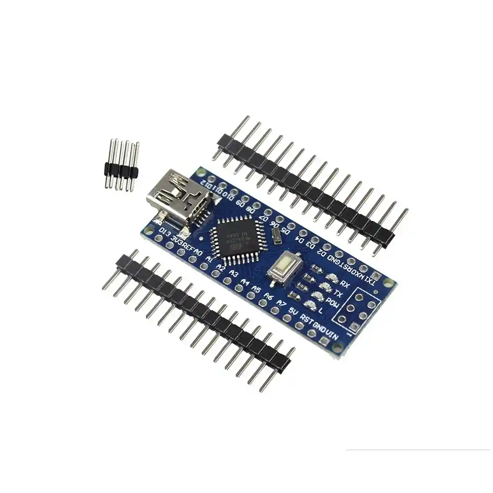 El Arduino Nano es un tablero pequeño, completo y facil de usar basado en el ATmega328P (Arduino Nano 3.x). Tiene mas o menos la misma funcionalidad del Arduino Duemilanove, pero en un paquete diferente. Le falta solo un conector de alimentacion de CC, y funciona con un cable USB Mini-B en lugar de uno estandar. Microcontrolador ATmega328 Arquitectura AVR Voltaje de funcionamiento 5 V Memoria Flash 32 KB de los cuales 2 KB utilizados por el gestor de arranque SRAM 2 KB Velocidad del reloj 16 MHz Clavijas IN analogicas 8 EEPROM 1 KB Corriente continua por pernos de E / S 40 mA (pernos de E / S) Voltaje de entrada 7-12 V Pines de E / S digitales 22 (6 de los cuales son PWM) Salida PWM 6 Consumo de energia 19 mA PCB Tamaño 18 x 45 mm Peso 7 g Alimentacion El Arduino Nano puede alimentarse a traves de la conexion USB Mini-B, una fuente de alimentacion externa no regulada de 6-20V (pin 30) o una fuente de alimentacion externa regulada de 5V (pin 27). La fuente de poder se selecciona automaticamente a la fuente de voltaje mas alta. Memoria El ATmega328P tiene 32 KB, (tambien se usan 2 KB para el gestor de arranque. El ATmega328P tiene 2 KB de SRAM y 1 KB de EEPROM. LA COMPRA INCLUYE: 1X ARDUINO NANO PARA SOLDAR MINI USB CH340 SIN CABLE ATMEGA328