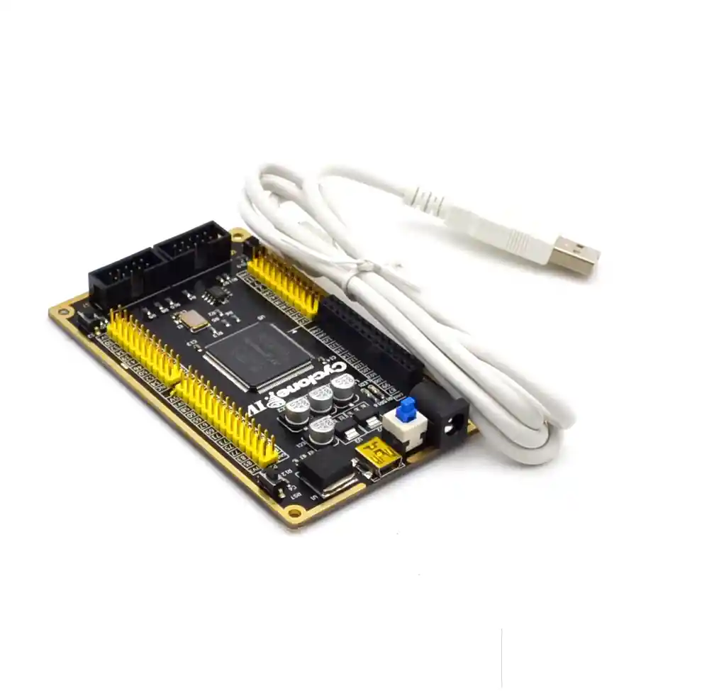 Patillas y bloques soldados predeterminados, tarjeta de nucleo FPGA de cuarta generacion, memoria M25P16 de gran capacidad (16M), soporte para memoria SDRAM 256M (modulos de memoria se venden por separado), experimentos perifericos de uso comun, soporte para imagenes de video, captura de camara, pantalla VGA, soporte TFT , Tarjeta SD. La rutina incluye todos los experimentos anteriores, esquemas y documentacion introductoria tutorial. La informacion se envia electronicamente sin CD. 1. Tamaño: 10 cm x 6,5 cm. 2. Chip principal: ALTERA FPGA Cyclone IV EP4CE6E22C8. 3.Lead todos los recursos de E / S del chip principal. Interfaz de expansion de 2 * 22 pines incorporada, interfaz de expansion de 2 * 28 pines, perifericos faciles de conectar. 4. Enchufe USB integrado, utilizado para la fuente de alimentacion. 5. Interfaz JTAG incorporada, utilizada para descargar el programa. 6.Con un LED de encendido, 2 LED de usuario. 7.Onboard 1 tecla de reinicio, 2 teclas de usuario. 8.En el chip de configuracion en serie de gran capacidad EPCS16 o M25P16, guarde el programa cuando la alimentacion este apagada. 9. Si necesita hacer NIOS o cache de gran capacidad, puede comprar nuestro modulo SDRAM para expandir. LA COMPRA INCLUYE: 1X TARJETA DESARROLLO FPGA ALTERA EP4CE Cyclone IV EP4CE6E22C8N 1X CABLE USB A PLUG ( PARA ENERGIZAR LA TARJETA)
