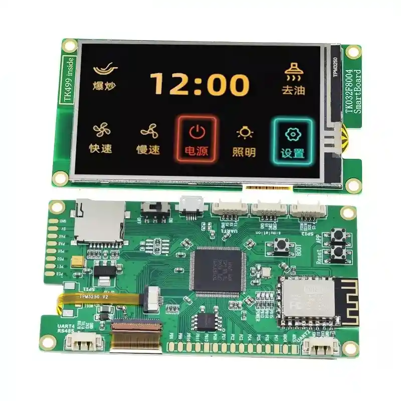 El módulo consta de una pantalla LCD de 800 × 480 y una placa controladora con una MCU de 240 MHz, memoria sustancial, además de un módulo WiFi ESP8266-12F. ¿Por qué es interesante este módulo? El módulo tiene una pantalla LCD de alta resolución adecuada, toque capacitivo (en lugar del resistivo obsoleto), una MCU rápida, mucha memoria y, lo que es más importante, el módulo WiFi. Esto hace que el módulo sea adecuado para aplicaciones de Internet de las cosas (IoT). El módulo WiFi (con el firmware apropiado cargado) aparece como un nodo LAN con un MAC exclusivo del módulo y una dirección DHCP IPv4 establecida por el enrutador LAN. Presenta un servidor con páginas web definibles por el usuario. El servidor también podría incluir comunicaciones seguras MQTT (también conocido como "mosquito"). El hardware del módulo es económico, pero ciertamente requiere un trabajo sustancial para convertirlo en un producto comercial. Vea a continuación para obtener más información sobre esto. Detalles técnicos, problemas y preguntas El TK499 está fabricado por una empresa china, Haojurun Technology en Shenzhen, que produce productos para fabricantes de equipos originales (OEM) de ingeniería de insignias. El chip STM32F429 de 168 MHz es similar en algunos aspectos, pero también tiene muchas diferencias. El TK499 se basa en el núcleo ARM Cortex-M4, integrado en un paquete LQFP128. Diferencias notadas: Reloj de sistema HSI de 240 MHz, derivado de un oscilador de cristal de 12 MHz. El reloj LSI de 32,768 kHz está incorporado, no es externo como los chips ST. 16 MB de QSPI Flash en lugar de Flash dentro de la MCU. 8 MB de SDRAM dentro del paquete MCU. Vea abajo. El bloque TK80 que proporciona acceso de alta velocidad de 24 bits (RGB888) al hardware LCD. Un conjunto de proyectos de Keil MDK suministrado por el OEM para la placa se ha portado con éxito a la cadena de herramientas ARM genérica. ¿Dónde está la SDRAM? En el Manual del usuario de TK499 y otros documentos, se indica que los 8 MB de SDRAM están integrados en el chip. Esto es poco común pero también técnicamente factible, porque la SDRAM de silicio es una SRAM físicamente más pequeña. La confusión radica en un diagrama de bloques que muestra SDRAM como memoria externa. LA COMPRA INCLUYE: 1X PANTALLA TKM32F499GT8 ESP12F 3.2 PULGADAS