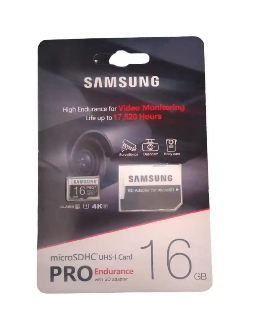 micro sd samsung pro endurance de 16 gb. con adaptador. ideal para smartphones, tablets y camaras digitales.