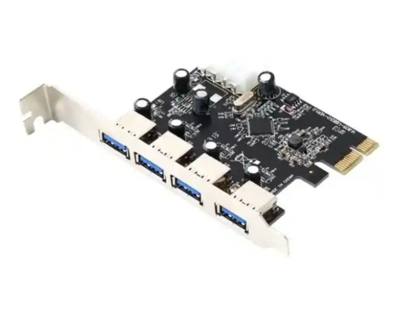 Tarjeta PCI Express con 4 puertos usb 3.0, 5 Gbps SuperspeedCaracterísticas:Una solución de transferencia de datos súper rápida y de alta capacidad.Estable y fiable para el Chipset NEC.Conforme a la revisión de especificación USB 3,0 1,0.Compatible con la especificación USB 2,0 y 1,1.Cumple con el rendimiento PCI-Express de un solo carril hasta 5Gbps.Soporta 2,5 Gbps PCI-E bus con Canal dúplex completo.4 USB 3,0 tipo A hembra conectores disponibles.Modo alimentado por Bus y sin potencia externa necesaria para la mayoría de los periféricos.Conector de alimentación molex de 4 pines disponible para algunos periféricos de consumo de corriente, como HDD.Soporte para Windows XP/Vista/7/8/10/Server 2008.Especificación:Tipo de dispositivo: adaptador de HUB USB de 4 puertos USB 3,0Tipo de interfaz: USB 3,0Tipo de transferencia de datos: 5,0 GbpsPeso: 3,49 oz (99g)El paquete incluye1x4 puertos USB 3,0 HUB PCI-E adaptador.1 x controlador CD.1 x Manual del usuario.