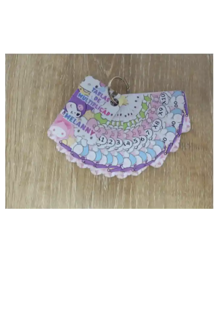Tarjetas educativas con tablas de multiplicar en práctico formato de llavero, ideales para que los niños estudien en cualquier lugar. Diseño colorido y resistente, perfecto para primaria y refuerzo escolar. Ayuda a mejorar la memoria y el aprendizaje de forma divertida. Elaborado con amor por Los Regalos de Juanita.