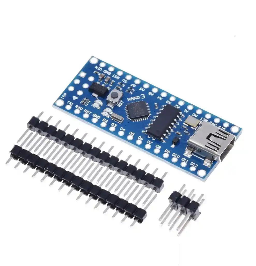El chip Atmega328P-AU y Atmega328P-MU es la misma funcion, Atmega328P-MU es la NUEVA version NANO! CH340G Reemplaza FT232RL 8 puertos de entradas analogicas: A0 ~ A7 14 puertos de entrada / salida digital: TX, RX, D2 ~ D13 6 puertos PWM: D3, D5, D6, D9, D10, D11 1 par de puertos transceptores seriales de nivel TTL RX / TX Usando Atmega328 MU Con Bootloader Admite descarga USB y alimentacion Soporte para fuente de alimentacion externa de 5V ~ 12V DC Soporte de fuente de alimentacion por bateria de 9V Soporte de descarga de ISP LA COMPRA INCLUYE: 1X ARDUINO NANO ATMEGA328P-MU PARA SOLDAR **** CABLE USB NO INCLUIDO****