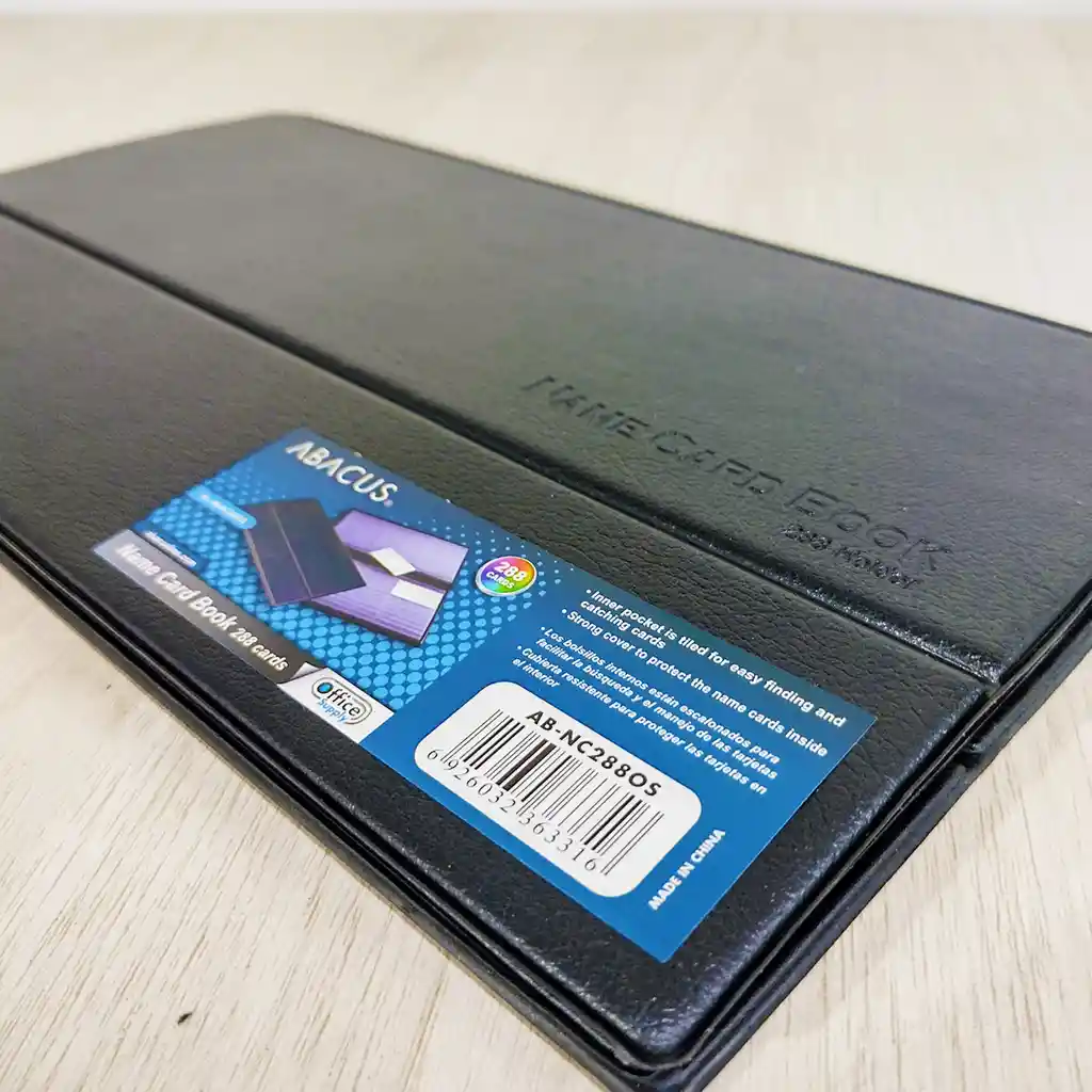 Tarjetero de cuero Un tarjetero donde podrás guardar 288 documentos o tarjetas de presentación, perfecto para llevarlo a todos lados y con un diseño elegante en color negro de cuero. Los bolsillos internos están escalonados para facilitar la búsqueda y el manejo de las tarjetas. Cubierta resistente para proteger las tarjetas en el interior Medidas de los bolsillos: 5.8cm x 9cm Medidas por fuera: 30cm x 18cm