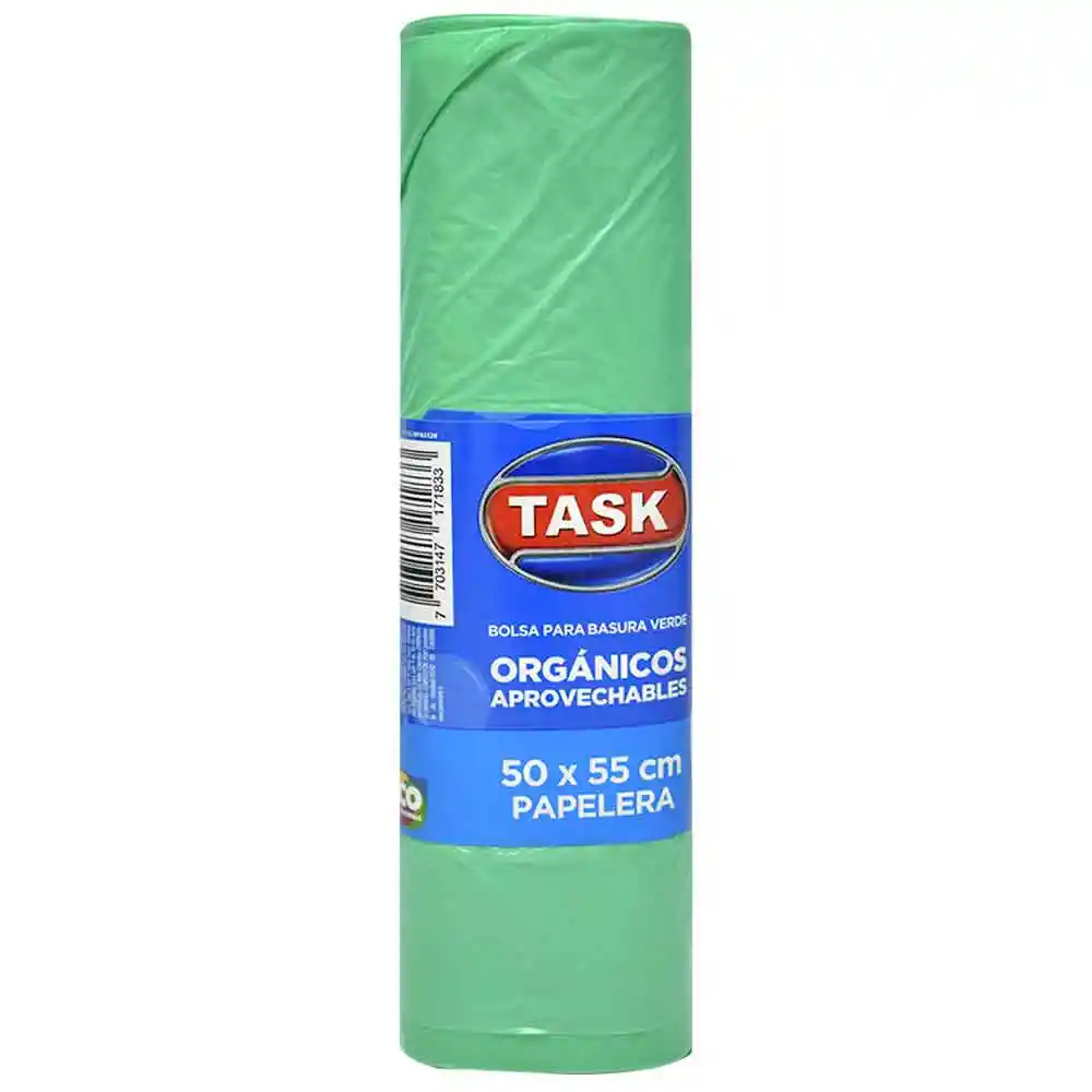 Bolsa Basura Task Rollo Verde Estas Bolsas Son Fabricadas 100% Con Material Reciclable, Se Utilizan De Color Verde Para Residuos Organicos(No Reciclables)