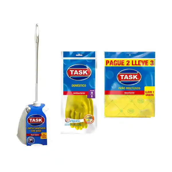 Kit Contiene 5 Unidades. Base Sanitario 1 Und + Paño Multiusos 3 Und + Guante 1 Und.