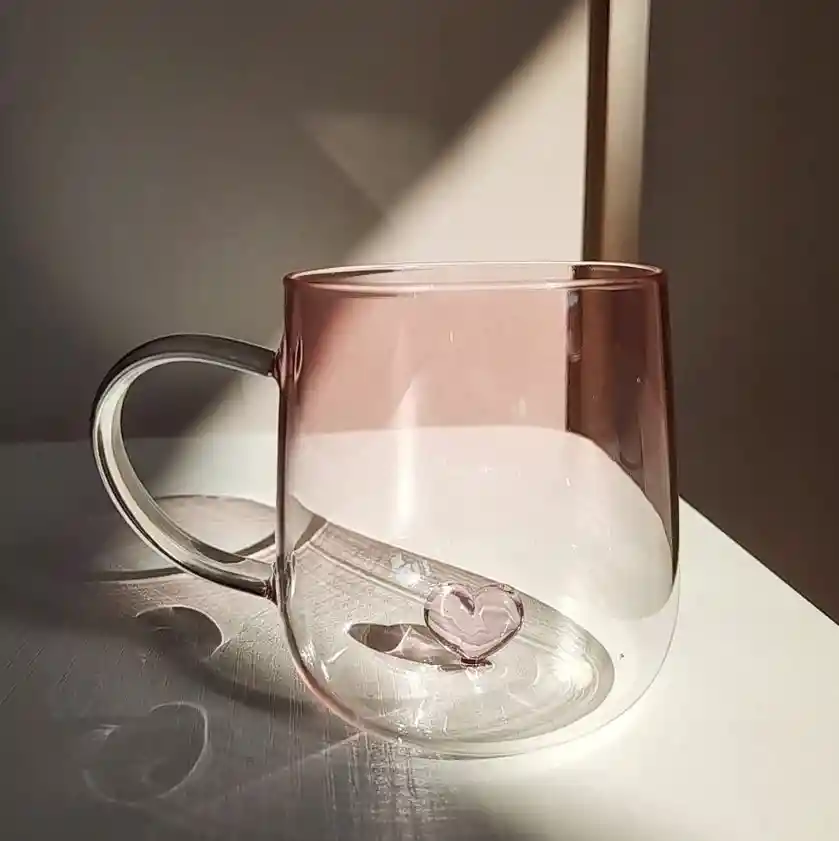 Taza de Vidrio Borosilicato con Corazón 3D y Degradado Rosa