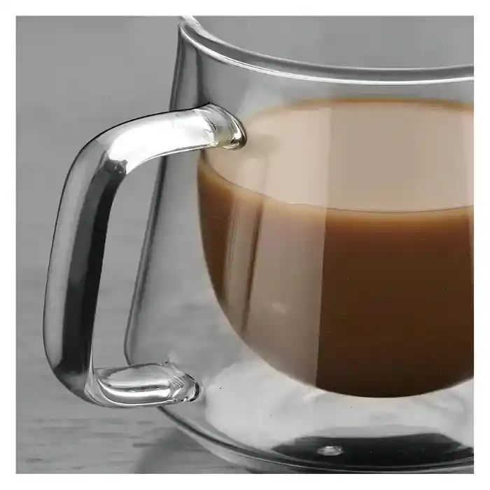 La taza de vidrio de doble pared mantiene las bebidas a temperatura por más tiempo gracias al vacío interno que reduce la condensación y la transferencia de calor. Su diseño apilable y aislado permite que se mantenga fría al tacto. Fabricada en vidrio de borosilicato, es ligera, resistente y cómoda de usar. Es adecuada para café espresso, capuchino y bebidas calientes o frías. Apta para microondas y congelador. Puede lavarse en lavavajillas, aunque se recomienda el lavado a mano para mayor durabilidad.