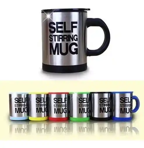 Esta taza con agitación automática SELF STIRRING MUG es la mejor manera de revolver su café, té, chocolate caliente, leche, batido de proteínas, caldo, etc. Ideal para la oficina, la escuela, el gimnasio y el hogar. Sin necesidad de cucharas, se mezclará automáticamente. Adecuado para bebidas frías y calientes. El diseño de tapa giratoria de apertura / cierre, a prueba de fugas, permite llevar la bebida de la cocina a cualquier lugar. Simplemente presiona el botón para comenzar a remover automáticamente, y presiónelo nuevamente para dejar de remover. Material de acero inoxidable. 300ml 8,5x22 cm.