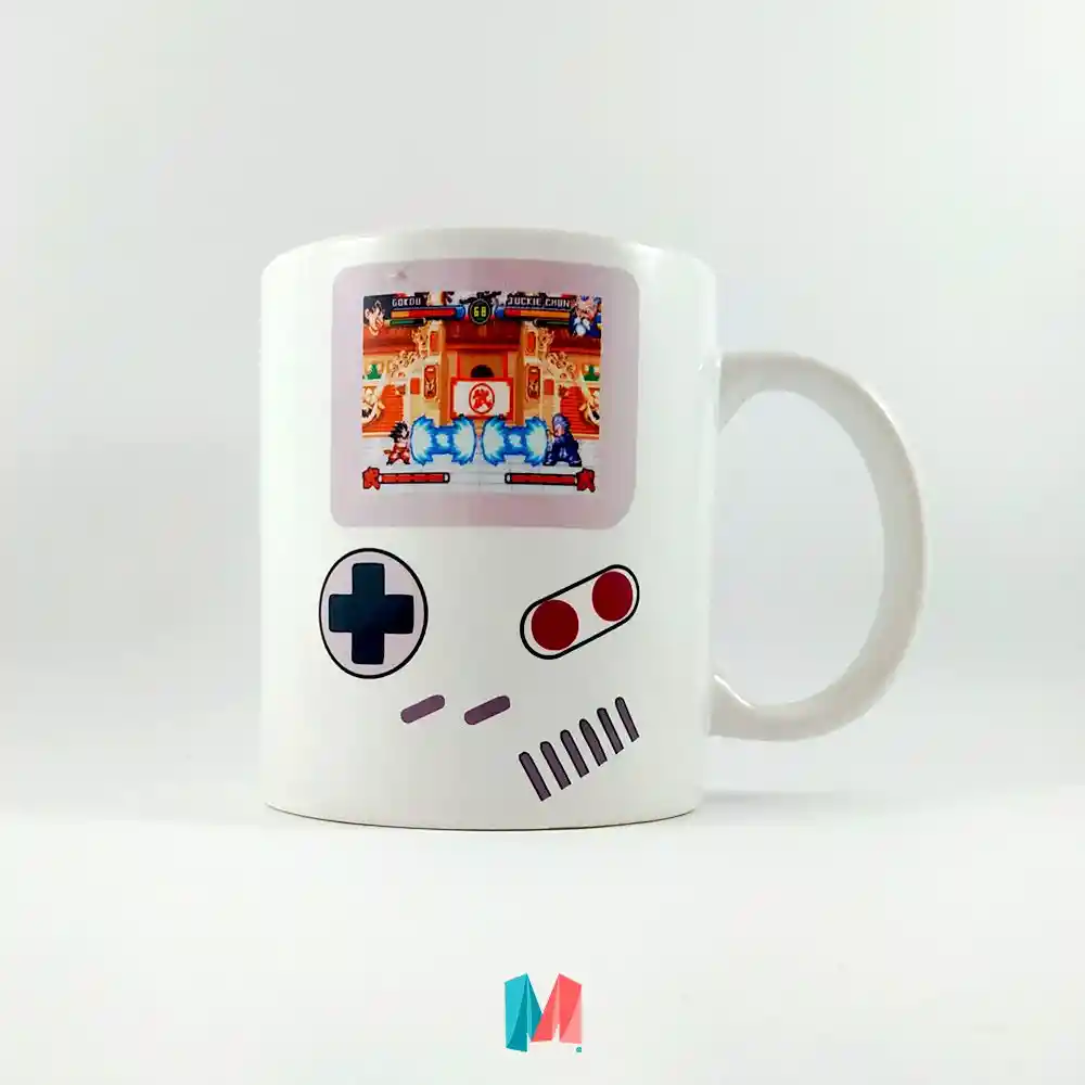 Taza cerámica de 11 oz en blanco, un homenaje al clásico Game Boy. Este mug, diseñado para los amantes de los videojuegos retro, es apto para microondas y añadirá un toque de la vieja escuela a tu colección.