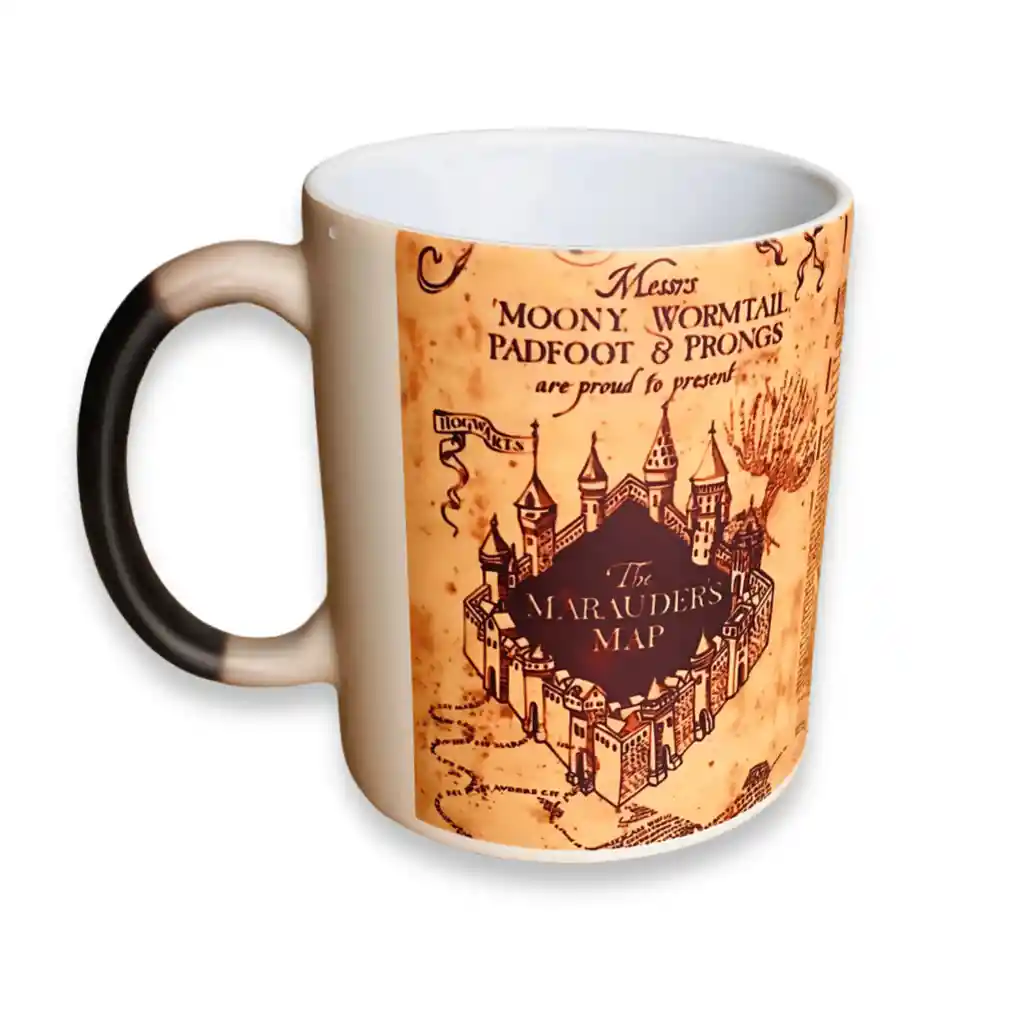 Taza Mágico Mapa del Merodeador – Harry Potter Esta increíble taza mágica térmica inspirada en el Mapa del Merodeador es un verdadero tesoro para los fans de Harry Potter. A simple vista, la taza luce completamente negra, pero al verter una bebida caliente, el diseño aparece y revela el misterioso y detallado Mapa del Merodeador, junto con la icónica frase: "Juro solemnemente que no tengo buenas intenciones." Características: Efecto mágico: cambia de color con líquidos calientes. Diseño exclusivo del Mapa del Merodeador. Material cerámico de alta calidad. Capacidad ideal para café, té o chocolate caliente. Siente la magia de Hogwarts en cada sorbo.