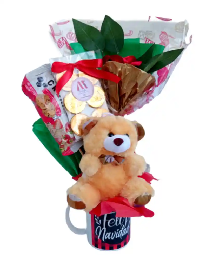 hermosa taza regalo de navidad , con chocolates, y mani americano , flores eternas, un regalo ideal para enviar tus mejores deseos en esta epoca navideña