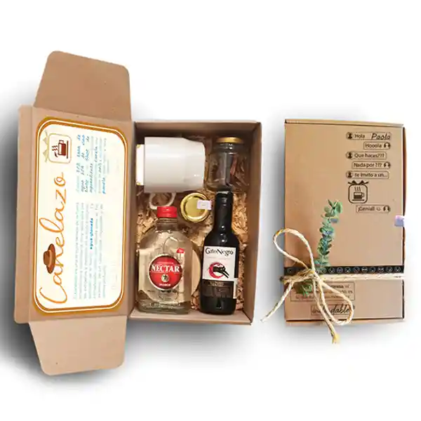 Invita A Esa Persona Especial A Un Delicioso Canelazo, Este Regalo Incluye: Vino Gato Negro Pequeño (185 Ml), Aguardiente Néctar (170 Ml), 1 Pocillo, Panela En Cubitos, Canela, Caja De Chocolates, Mezclador De Madera Y Portavaso De Madera.. .. .