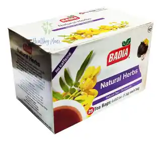 El Té de hierbas de Badia es compuesto de Hojas de Sen, donde se atribuyen propiedades laxativas que permiten una sana digestión y colaboran en la eliminación de toxinas en el organismo, es una tisana que idealmente debe consumirse en la noche para depurar.