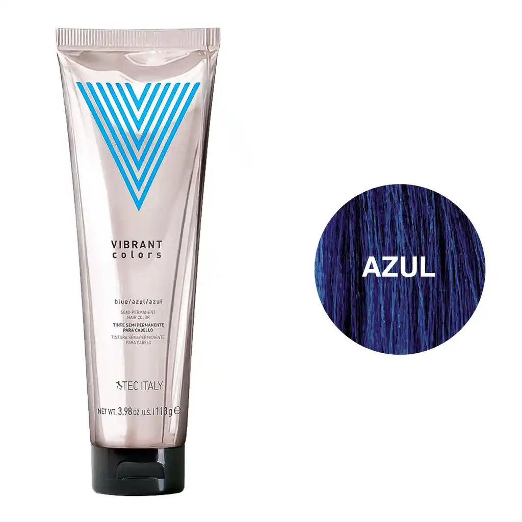 Tec Italy Vibrant Colors Tinte Azul 113g Es una coloración semipermanente que otorga al usuario libertad creativa con tonos intensos de reflejos vibrantes y una gama de color Inter mezclable para la máxima personalización del color. Beneficios: Brinda mayor vitalidad y durabilidad. Resultados fieles al tono. Vegano. No requiere. Libre de amoniaco Modo de uso: Decolorar el cabello en alturas 7-10 dependiendo del tono elegido. Aplique en cabello limpio y seco a 1cm del cuero cabelludo emulsionando perfectamente el color. Deje en tiempo de exposición de 20 a 30 minutos. Enjuague el cabello por varios minutos.