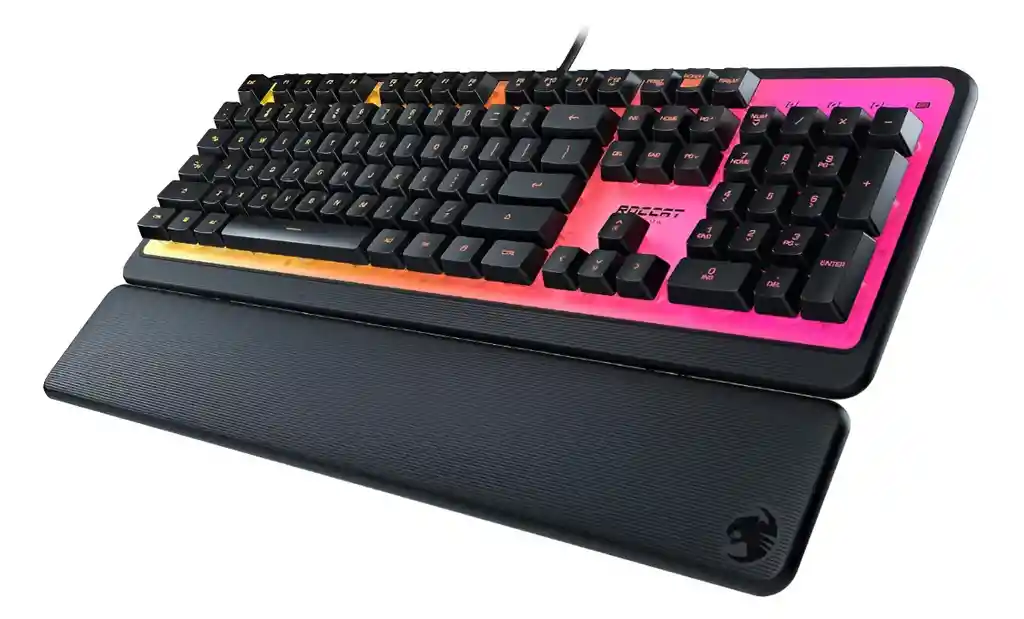 Características Destacadas: ====================================== Llaves de membrana silenciosas: equipadas con llaves de cúpula de goma de alta calidad para una escritura silenciosa que se siente sensible y fiable Antifantasma avanzado: tecnología para garantizar que cada pulsación clave de las teclas más utilizadas esté registrada, no importa lo frenética que sea la acción de juego Personaliza a tu manera: la tecnología Easy-Shift[plus] de ROCCAT añade una función secundaria a las teclas compatibles simplemente mantén pulsada la tecla modificadora designada para duplicar la potencia de comando en un instante Iluminación AIMO: el sistema ecológico de iluminación patentado de ROCCAT conecta dispositivos compatibles presentan escenarios de iluminación vívidos desde el primer momento, sin la necesidad de una configuración extensa con retroiluminación completa en 16.8 millones de colores Reposamanos desmontable: te permite ajustar tu configuración a lo que sea cómodo para ti, ya sea una escritura relajada o un estilo de juego agresivo Diseño de bajo mantenimiento: la capa de membrana de alta calidad y la placa superior translúcida están diseñadas con precisión para crear una superficie sellada, manteniendo el polvo y la suciedad fuera y permitiendo una limpieza sin complicaciones