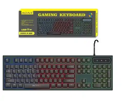 NOMBRE DEL PRODUCTO: Teclado USB M-800 FICHA TÉCNICA: -Teclado M-800 -Conexión USB -Teclas cómodas -Luces RGB -Ergonómico -Marca AOAS Con este increíble teclado, podrás digitar tus tareas personales con comodidad y estilo, y también puede jugar con su especial función de teclado gamer por su conexión rápida USB y su retroiluminación RGB.