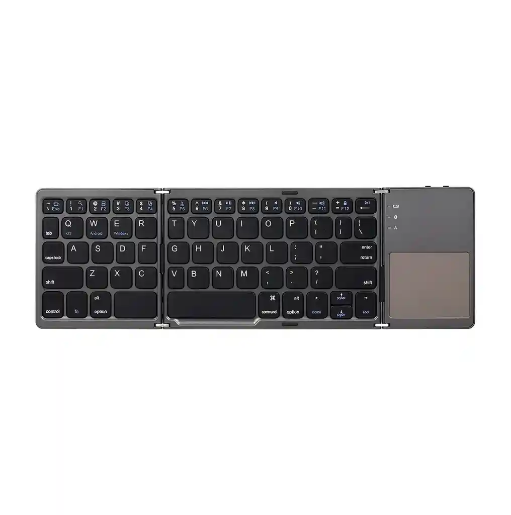 Este teclado Bluetooth ultra delgado y plegable es la herramienta definitiva para transformar tu tablet o smartphone en una estación de trabajo completa, sin importar dónde estés. Su diseño inteligente en tres secciones no solo lo hace extremadamente portátil, sino que integra un touchpad de alta precisión para que no necesites llevar un ratón adicional. Fabricado con una estructura resistente y ligera, ofrece una experiencia de escritura cómoda y silenciosa, además de contar con una batería recargable de larga duración que garantiza semanas de uso con una sola carga. Gracias a su conectividad multidispositivo, puedes alternar fácilmente entre tu celular, computadora o tablet con un solo comando, convirtiéndolo en el aliado perfecto para viajes, reuniones y teletrabajo. Ficha Técnica Producto: Teclado Bluetooth Plegable Multidispositivo Modelo: A-1008 Conectividad: Bluetooth de alta velocidad con botón de emparejamiento dedicado Touchpad: Integrado (56.5 x 40.5 mm) compatible con gestos Dimensiones abierto: 324.1 milímetros x 101 milímetros x 7.1 milímetros Dimensiones plegado: 162.6 milímetros x 101 milímetros x 13.7 milímetros Peso: 166 gramos Puerto de carga: Tipo C (actualizado para mayor rapidez) Distancia de funcionamiento: Hasta 10 metros Corriente de trabajo del teclado: Menos de 4mA Corriente de trabajo del touchpad: Menos de 12mA Tiempo de espera: Hasta 560 horas Tiempo de carga: 2 a 3 horas Compatibilidad: iOS, Android, Windows y Smart TV con Bluetooth Políticas de Garantía Este producto cuenta con una garantía de 30 días contra defectos de fabricación (fallos de conexión Bluetooth, errores en el puerto de carga o teclas que no registran pulsación). La garantía no cubre daños causados por maltrato físico, golpes que afecten las bisagras, derrames de líquidos, o si el producto ha sido manipulado internamente. Para validar la garantía, es indispensable conservar el empaque original y presentar el producto en perfecto estado de limpieza.