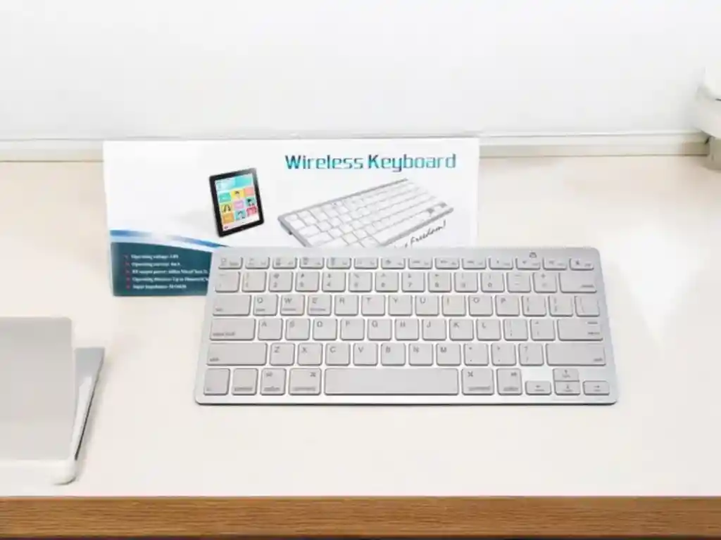 Cómodo y silencioso. Las teclas silenciosas y de perfil bajo aportan un nuevo nivel de comodidad a tus dedos. Además, mantenga todas sus funciones y controles multimedia más cerca que nunca de las teclas de acceso rápido dedicadas a Windows. La construcción de estas llaves de tijera se puede utilizar más de 3 millones de veces continuamente. Sin cables conexión Bluetooth con tus dispositivos móviles como tabletas y teléfonos móviles. Te traerá más comodidad cuando necesites escribir. Distancia de funcionamiento de hasta 10 Mts Amplia compatibilidad utilizar con los cuatro principales sistemas operativos compatibles con Bluetooth (iOS, Android, Mac OS y Windows), incluyendo iPad, iPhone / Android tabletas y teléfonos inteligentes como Samsung Galaxy Tab, Google Nexus / Windows, etc. Diseño práctico diseño QWERTY con teclas rápidas personalizadas para todos los iPads, incluyendo volumen, control de música, brillo, etc. Larga duración de la batería: diseño de ahorro de energía y modo de suspensión automática permiten hasta 4 meses entre los cambios de batería. (basado en 2 horas) (2 pilas AAA no incluidas). Especificaciones: Bluetooth Edition: Bluetooth 3.0 y compatible con el último Bluetooth 5.0. Dimensiones: 11.220 x 4.724 x 0.236 in. Botones: 78 teclas (incluyendo 13 teclas de acceso rápido del iPad). Peso: 7.65 oz. Rango de funcionamiento: hasta 10 mts
