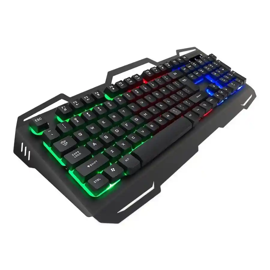 Teclado metálico GAMER TECH, con empaque de lujo, este producto cuenta con características exclusivas como Retroiluminado con Luz LED RGB. Excelente diseño Cable USB de alta calidad con filtro.