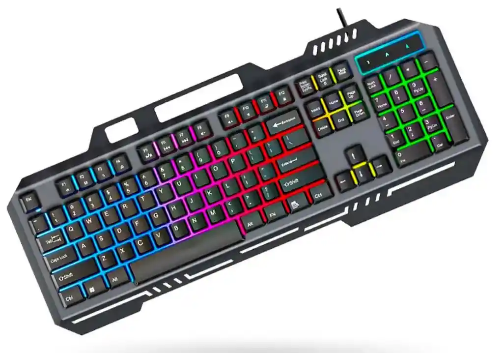 Lleva tu experiencia gamer al siguiente nivel con el Teclado Gamer K-3000 RGB, diseñado para jugadores que buscan potencia, estilo y rendimiento sin pagar de más. Su retroiluminación LED RGB de colores vivos, combinada con sus teclas suspendidas y sensación mecánica, te ofrece una experiencia de juego más intensa, precisa y fluida. Ideal para largas jornadas de gaming, trabajo o estudio gracias a su panel robusto, silencioso y cómodo. Además, su panel metálico resistente, su cable de 1.3 metros y su compatibilidad universal lo convierten en un teclado versátil para computador, portátil, Smart TV, Android y iOS. Perfecto para gamers, creadores de contenido, estudiantes y oficinas que necesitan un teclado duradero, con estilo y con excelente respuesta táctil. BENEFICIOS DESTACADOS Iluminación LED RGB con efecto de luz mixto para una estética gamer impresionante. Teclas suspendidas + sensación mecánica para mayor comodidad y precisión. Panel metálico resistente, ideal para uso rudo o largas sesiones. Teclas ultra silenciosas, perfectas para grabación de contenido o streaming. Cable reforzado de 130 cm, listo para setups amplios. Multidispositivo y multisistema: Compatible con PC, portátil, Smart TV, Android y iOS. Diseño ergonómico que mejora la postura y reduce la fatiga al escribir o jugar. FICHA TÉCNICA BREVE CARACTERÍSTICAS PRINCIPALES Modelo: Teclado Gamer K-3000 Iluminación: LED RGB con efecto mixto Cantidad de teclas: 104 teclas Tipo de teclas: Suspendidas, sensación mecánica Material: Panel metálico reforzado Compatibilidad: PC, Laptop, Android, iOS, Smart TV Conexión: USB cableado Longitud del cable: 130 cm