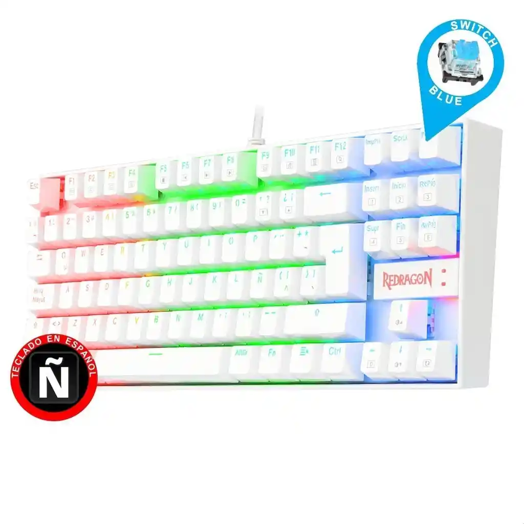 Teclado Gamer Mecánico Redragon K552 Kumara, Iluminación RGB Switch Blue SWITCHES OUTEMU: El corazón de los teclados Redragon está equipado con tecnología Outemu, en este caso, los switches Outemu , de click audible y con activación al ejercer sólo 60 gramos de fuerza sobre la tecla, hacen del Kumara un teclado que acompaña cualquier escritura o juego. ILUMINACIÓN RGB La iluminación del Kumara K-552 RGB consta de teclas retroiluminadas configurables mediante software independiente para el gusto y comodidad del usuario, con posibilidades de guardar perfiles dentro de la memoria interna del teclado, logrando un resultado óptimo basado en sus necesidades. TECLA DE BLOQUEO DE WINDOWS Como su nombre lo dice, esta tecla añade funcionalidad al teclado, evitando tocar accidentalmente la tecla que cierre nuestro juego mientras nos encontramos en el punto clave de la partida. TECLA FN La inclusión de la tecla FN admite el uso de atajos multimedia que aportan al confort del usuario en todo momento. TENKEYLESS La carencia de teclado numérico convierte al Kumara en un teclado compacto, ideal para espacios reducidos o sencillamente porque no le damos uso. CONSTRUCCIÓN La construcción del teclado está realizada sobre ABS reforzado y placa de acero, combinado con teclas moldeadas por inyección láser de doble disparo y posteriormente grabadas, generan un producto durable y de excelente calidad, ideal para uso intensivo. Su cable de 1.8 metros resiste hasta 12kg de carga continua y hasta 10.000 flexiones bruscas. Su estructura real antisalpicaduras protege al usuario de derrames accidentales sobre nuestro periférico, drenando el líquido por la parte posterior de la base del teclado. Por último, pero no menos importante: todos los teclados Redragon poseen bases antideslizantes que aseguran la rigidez del periférico en el lugar que hayamos decidido colocarlo. ESPECIFICACIONES KUMARA K552 RGB Tipo de interruptores: Mecánicos Tipo Switch: Outemu Blue Teclas Multimedia: Si, a tráves de tecla FN Teclas Macro: No Bloqueo Tecla Windows: Si Tamaño teclado: Tenkeyless (sin pad númerico) Reposa Muñecas: No Retroiluminado: Si, RGB Chroma Cable: Goma, reforzado. Soporta 12kg y 10000 flexiones. USB enchapado en oro y filtro anti interferencias Matriz: 100% Anti-Ghosting con Full Key Rollover Construcción: Plástico ABS reforzado y placa de acero Antisalpicaduras: Si Idiomas Disponibles: Español