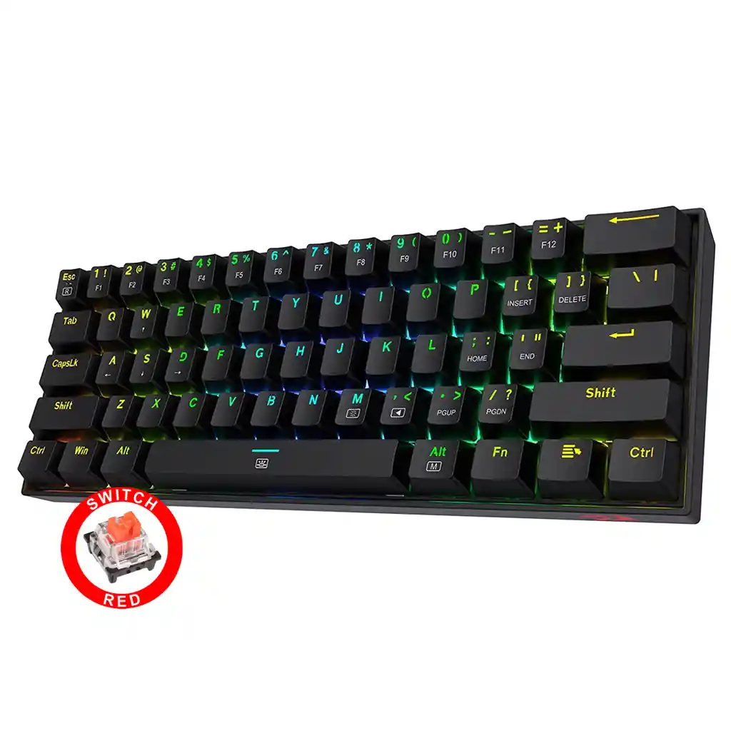 Teclado Gamer Redragon DRAGONBORN K630RGB Iluminación RGB Español TAMAÑO 60% / PODER 100% El Dragonborn es un teclado mecánico 60%, compacto, robusto y súper transportable, con prestaciones óptimas para el juego competitivo de alto nivel: switches Redragon Brown, tecla Fn, bloqueo de tecla de Windows, cable desmontable y la mejor calidad de construcción. REDRAGON RED Tienen una durabilidad asombrosa de 50 millones de clics, y por ser tipo box, son resistentes al polvo y las salpicaduras. Además, están preparados para el cambio rápido o “hot swap”, por lo que puedes intercambiarlos individualmente por otros switches Redragon. LIBERTAD PARA EL RATÓN El espacio que el Dragonborn ahorra en tu escritorio es el espacio que gana el ratón. Por esa razón los teclados 60% son tan requeridos por jugadores de todo el mundo: para juegos tipo FPS, por ejemplo, en los que la movilidad del ratón es tan importante, un pequeño guerrero como el Dragonborn puede brindarte muchas soluciones. CABLE DESMONTABLE El cable del Dragonborn es desmontable, con lo que gana una enorme practicidad para trasladarlo libremente de un lado a otro. Su conector USB tipo C en forma de “L”, con entrada en el lateral izquierdo, agrega además un plus de seguridad al evitar desconexiones accidentales. Es perfecto para la utilización en distintos dispositivos de manera muy fácil, rápida y segura. ¡BRILLANTE! El sistema de retroiluminación del Dragonborn brilla con ganas. Posee 13 perfiles atractivos y muy dinámicos entre los que puedes alternar de manera rápida y sencilla, con posibilidades de personalización. Además, tienes la libertad de ajustar el brillo y la velocidad de los efectos de luz a tu gusto, desde el propio teclado. TECLAS DE DOBLE INYECCIÓN Las 61 teclas del Dragonborn son de activación independiente, lo que permite pulsaciones simultáneas completas (anti-ghosting y full key rollover). ¡Un rasgo fundamental para el juego competitivo! ESPECIFICACIONES • TIPO DE TECLADO: mecánico. • TIPO DE SWITCHES: Redragon Red (táctil sin clic audible, 45 g de fuerza de actuación) • TECLAS MULTIMEDIA: no. • TECLAS MACRO DEDICADAS: no. • BLOQUEO DE TECLA WINDOWS: sí. • TAMAÑO: compacto 60%. • REPOSAMUÑECAS: no. • RETROILUMINADO: sí, RGB Chroma. • CABLE: USB-C desmontable. • MATRIZ: 61 teclas full rollover. • CONSTRUCCIÓN: plástico ABS reforzado. • ANTI SALPICADURAS: sí. • DISTRIBUCIÓN: ESPAÑOL • PESO: 0,57 kg. • DIMENSIONES: 29,17 x 10,17 x 3,6 cm. • SOFTWARE: sí (Solo version RGB) CONTENIDO • K630 DRAGONBORN • MANUAL DE USO • STICKER REDRAGON • EXTRACTOR DE KEYCAPS • EXTRACTOR DE SWITCHES