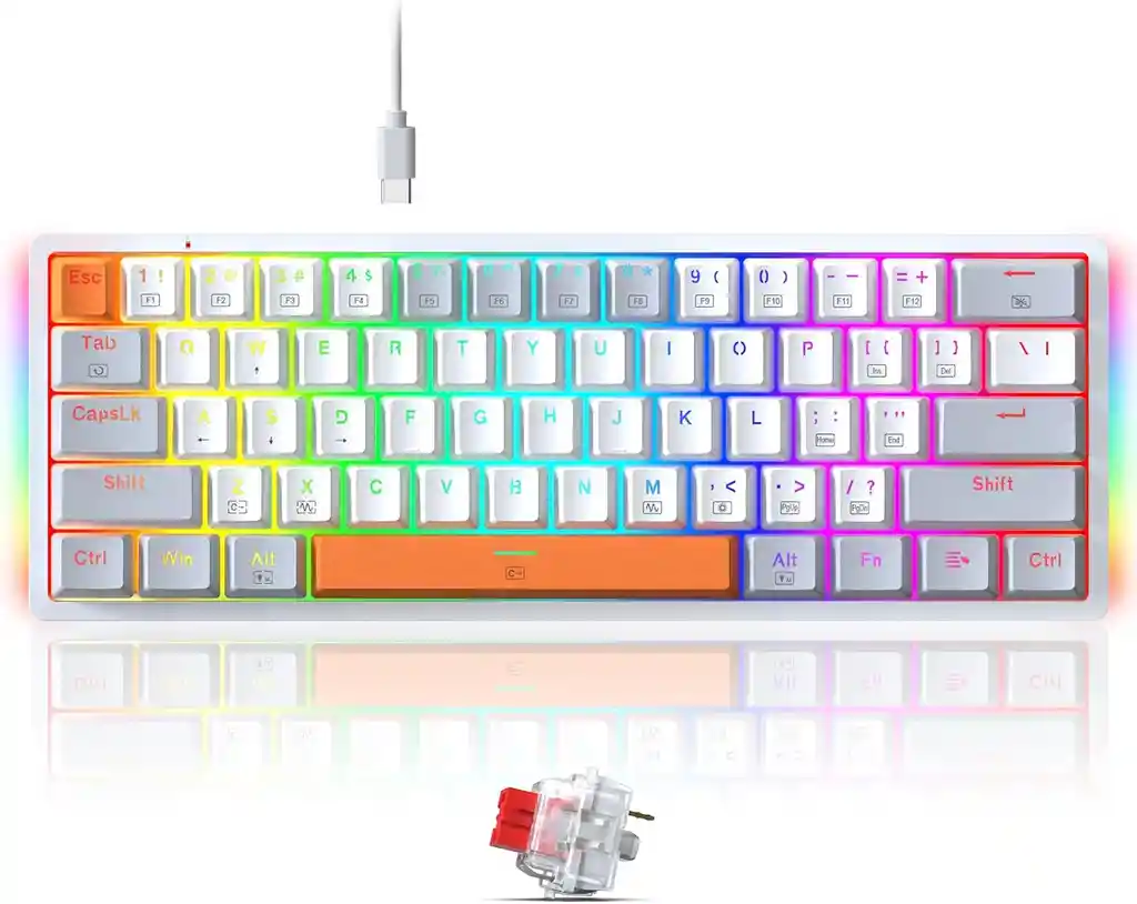 Características del producto: - Compacto 60 por Ciento: Diseño compacto que maximiza el espacio en tu escritorio para un movimiento rápido y una mejor ergonomía durante largas sesiones de juego. - Interruptores Rojos Retroiluminados RGB: Experimenta una iluminación vibrante y personalizable con interruptores rojos que proporcionan una respuesta suave y rápida en cada pulsación. - Intercambiable en Caliente: Cambia los interruptores fácilmente según tus preferencias de juego y estilo, sin necesidad de soldadura ni herramientas especiales. - Totalmente Programable: Personaliza cada tecla según tus preferencias de juego con software dedicado, asignando macros y funciones específicas para una ventaja competitiva. - Compatibilidad Universal: Compatible con Windows, laptops y PCs, este teclado es ideal para cualquier jugador que busque un rendimiento excepcional en cualquier plataforma. - Conexión con Cable: Conexión estable y confiable a través de cable USB, sin retrasos ni interrupciones durante las sesiones de juego intensas. Especificaciones Técnicas: Modelo: K642WGO-RGB Diseño: Compacto al 60 por ciento Número de teclas: 61 Interruptores: Rojos retroiluminados RGB, intercambiables en caliente Compatibilidad: Windows, laptops, PC Conexión: Cable USB-C Programabilidad: Totalmente programable Software: Software dedicado para personalización de teclas y macros Soporte de muñeca No Dimensiones: 29,7 x 10,7 x 3,6 centímetros Sistemas Operativos Compatibles: Windows, Linux y Mac Color: Blanco y Gris ¡Eleva tu juego al siguiente nivel con el Teclado Mecánico Redragon K642WGO-RGB al 60%! ¡Haz clic ahora y domina el campo de batalla con estilo y precisión!