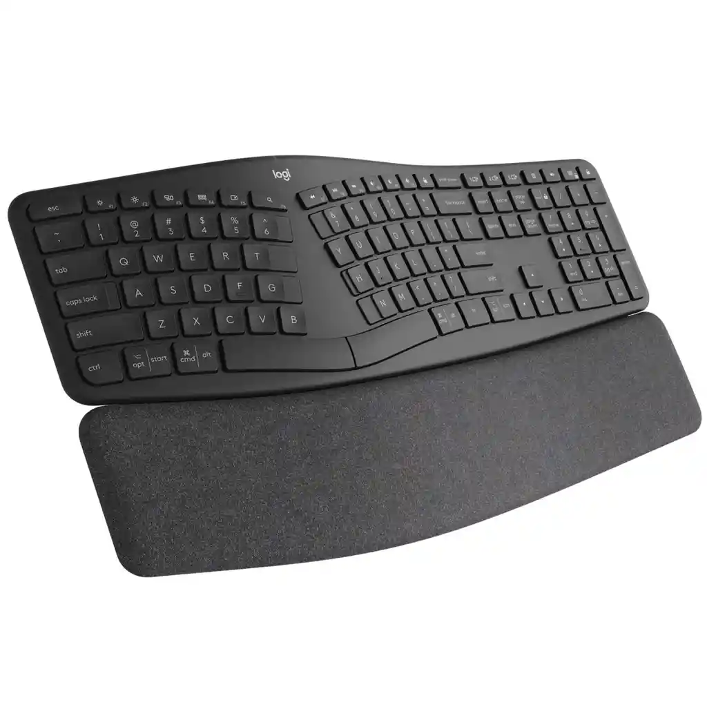 Teclado Inalámbrico Ergonómico Dividido Logitech Ergo K860 TECLADO DISTRIBUCIÓN EN ESPAÑOL UNA MEJOR EXPERIENCIA DE ESCRITURA Presentamos el ERGO K860, un teclado partido ergonómico diseñado para disfrutar de una postura mejor, reducir la tensión y tener más soporte. Escribirás con más naturalidad con un teclado curvado y partido que mejora la postura. La forma inclinada reduce la tensión muscular en las muñecas y los antebrazos. Así, las manos y los hombros permanecen relajados. MEJOR POSTURA, MEJORES RESULTADOS La estructura de teclas curvada del ERGO K860 permite colocar las manos, las muñecas y los antebrazos en una postura más natural. Notarás que las manos no están en tensión en el teclado. Se ha demostrado que ERGO K860 reduce un 21% la actividad muscular del trapecio superior, un músculo clave en el centro de la espalda que estabiliza y facilita el movimiento de los hombros y del cuello. TRES CAPAS DE COMODIDAD Y SOPORTE El reposamuñecas acolchado coloca los antebrazos justo por encima del teclado, lo que ofrece un 54% más de soporte de las muñecas y reduce la flexión de las muñecas en un 25%. 1. CAPA DE SUPERFICIE: 0,5 mm de TEJIDO con recubrimiento suave al tacto, duradero, resistente a las manchas y fácil de limpiar. 2. CAPA DE SOPORTE: 2 mm de ESPUMA DE ALTA DENSIDAD proporcionan una sensación confortable y firme que dispersa por igual la presión. 3. CAPA DE CONFORT: 4 mm de ESPUMA VISCOELÁSTICA ofrecen una sensación agradable y personalizada que mejora la sensación de confort y relajación. ELEVACIÓN DE LAS MUÑECAS Mantén las muñecas en una postura cómoda y natural, sentado y de pie, con una innovadora función de elevación de palmas. La inclinación de las patas ajustables de 0°, -4° y -7° eleva las palmas a la posición ergonómica óptima según tu configuración exclusiva. PRECISIÓN SIN ESFUERZO CON TECLAS PARA PULSACIONES PERFECTAS Una experiencia de escritura fluida y ultraprecisa sin comprometer la velocidad ni la precisión. Tus dedos se deslizan con total fluidez por la superficie mate de las teclas. Y los detalles táctiles ayudan a orientar los dedos y a mantener la concentración. El teclado partido y la curva convexa fomentan una colocación de manos y dedos más natural. ____________________________________________________ ESPECIFICACIONES • Dimensiones • Altura: 233 mm • Ancho: 456 mm • Profundidad: 48 mm • Peso: 1160 g REQUISITOS DEL SISTEMA • Conectividad • Bluetooth® 5.0 (requiere compatibilidad con Bluetooth y HID de teclado) • Receptor USB (Requiere un puerto USB A) • Conexión Bluetooth • Bluetooth de bajo consumo • Windows® 8,10 o posterior • macOS 10.13 o posterior • Receptor USB • Windows 7,8,10 o posterior • macOS 10.13 o posterior ESPECIFICACIONES TÉCNICAS • Compatibilidad de conexión • Receptor USB de 2,4 GHz • Tecnología Bluetooth de bajo consumo • Software compatible • Logitech Options™ en macOS 10.11 y posteriores, y Windows 7 y posteriores • Tipo de batería • 2 baterías AAA • Radio de acción inalámbrico • Radio de acción inalámbrico de 10 m 4El radio de acción inalámbrico depende del entorno operativo y de la configuración de dispositivos. • Cifrado inalámbrico 5Cifrado inalámbrico entre el teclado y el ordenador o el dispositivo móvil conectado. CONTENIDO DE LA CAJA • Teclado ergonómico • Receptor USB • 2 baterías AAA • Guía de inicio rápido