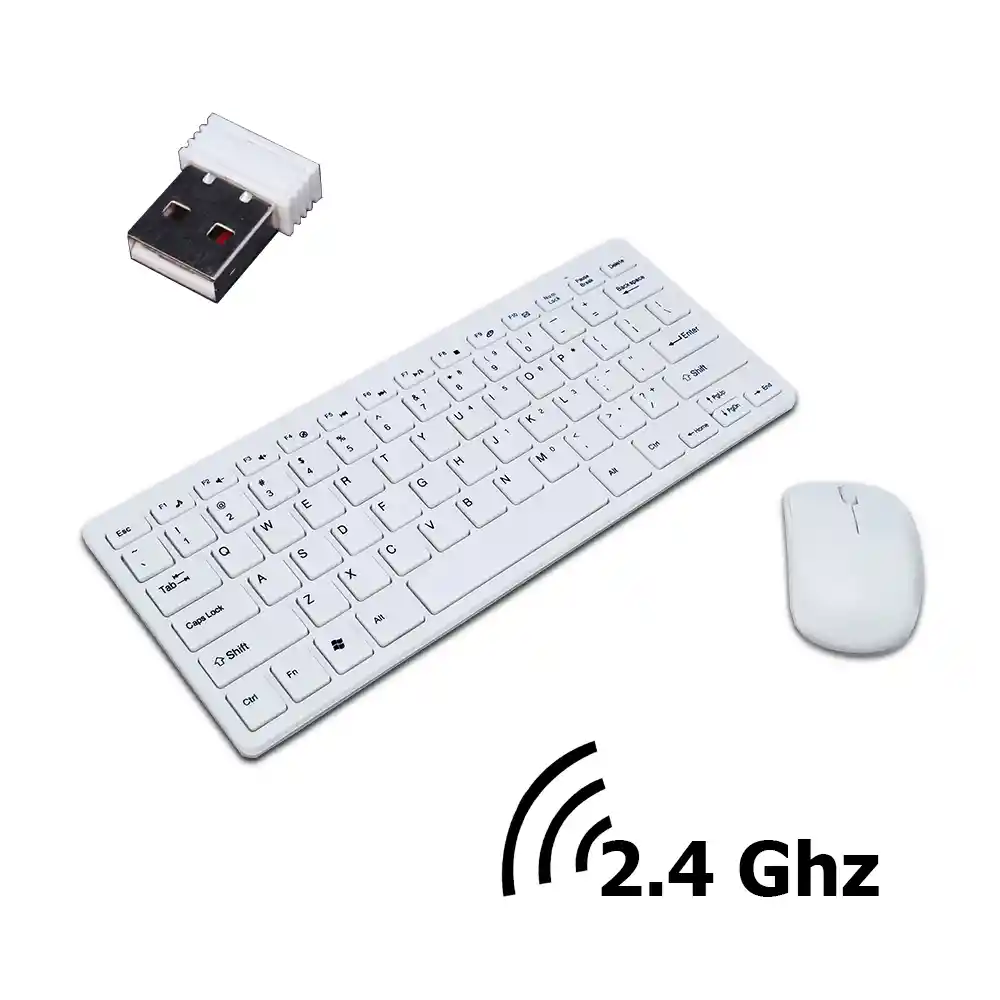 TECLADO INGLÉS (NO TIENE TECLA Ñ) • Tipo de teclado: teclado inalámbrico 2.4G • Distancia de funcionamiento: 10 m • Frecuencia de portadora inalámbrica: 2402MHZ-2480MHZ • Canal inalámbrico: 16, técnica de salto automático de frecuencia • Vida de la prensa dominante: más de 10 millones de veces • Potencia: 2 pilas AAA (incluidas) • Tamaño: 285 mm (L) * 120 mm (W) * 22 mm (H) • Compatible para Windows ______________________________________________________________ Mouse • El DPI: 1000DPI. • Frecuencia de 2.4 GHz • Rango de trabajo: 10 m • 1 pila AAA (incluida) • El mini receptor se puede insertar en el cuerpo del mouse • Sin necesidad de coincidencia de código • Tamaño: 82 mm (L) * 44 mm (W) * 25 mm (H) ______________________________________________________________ CONTENIDO • 1x Teclado inalámbrico 2.4G • 1x 2.4G ratón inalámbrico • 1x Protector del teclado • 1x Receptor USB • 3x Pilas AAA